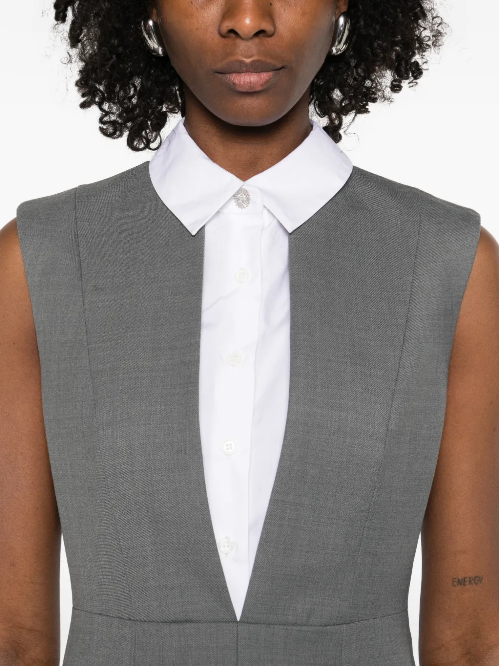 Серое изделие с панельным дизайном, поло с отложным воротником, без рукавов, боковые карманы