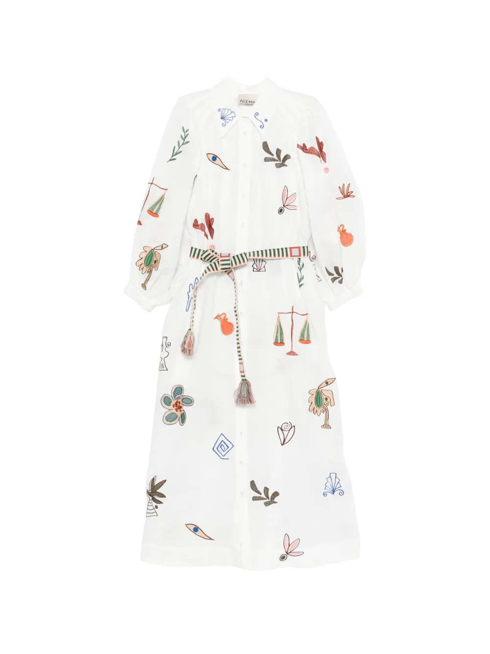 Платье миди с вышивкой ALEMAIS, белый