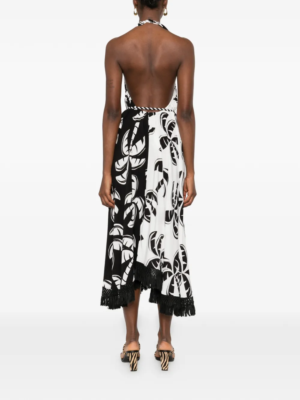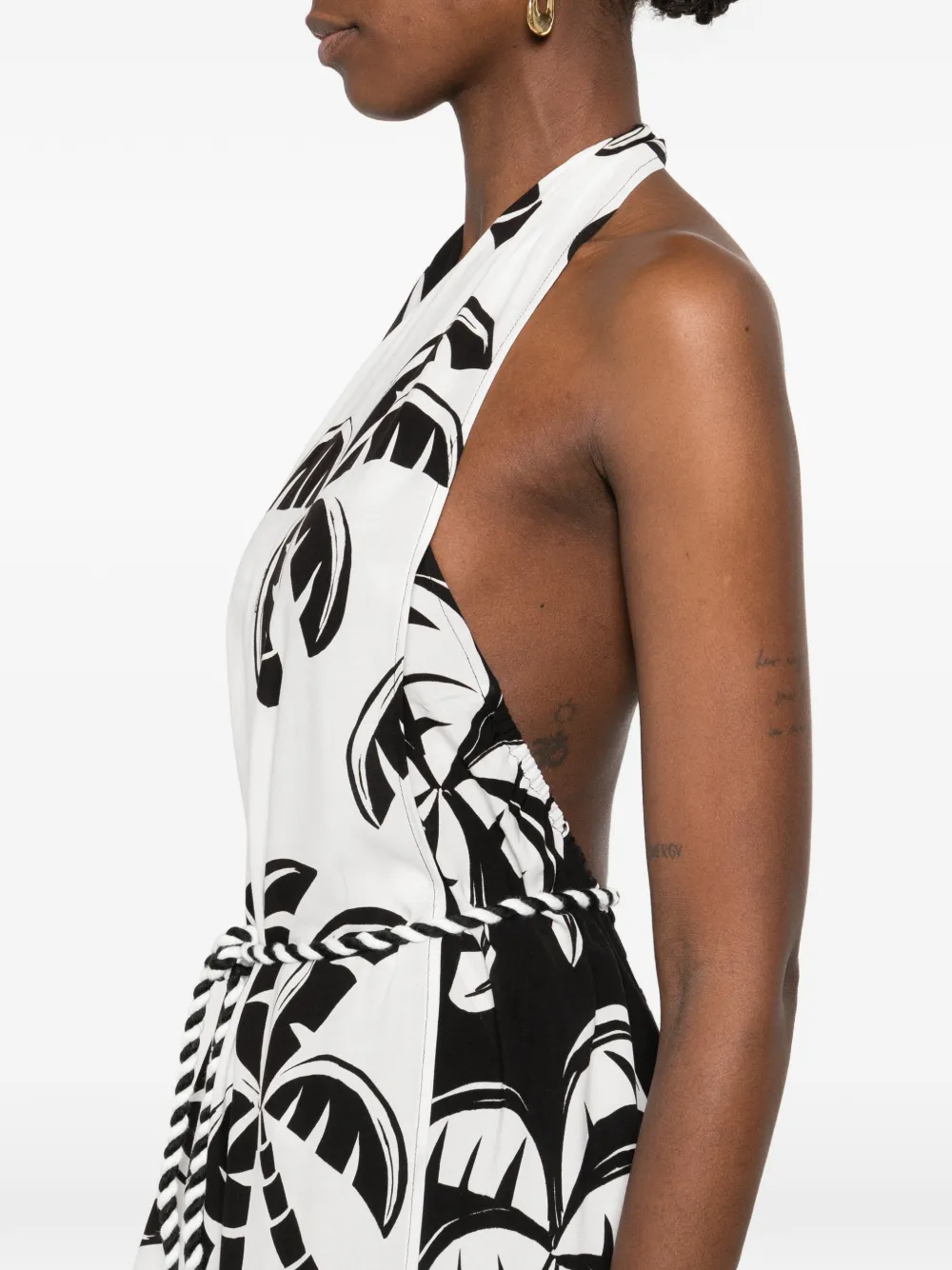 Черный халтер с принтом пальм и поясом на завязках