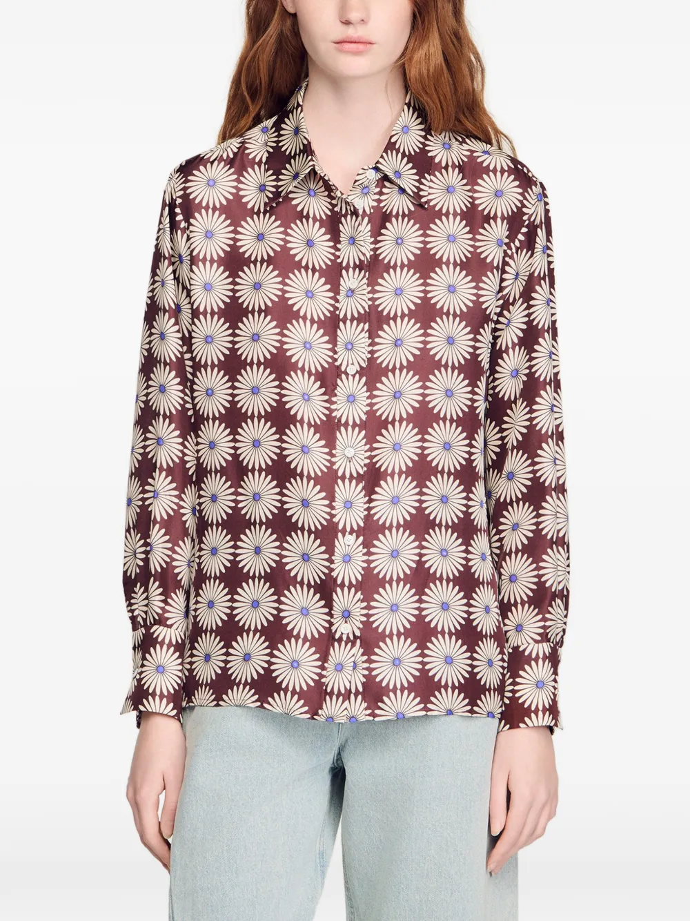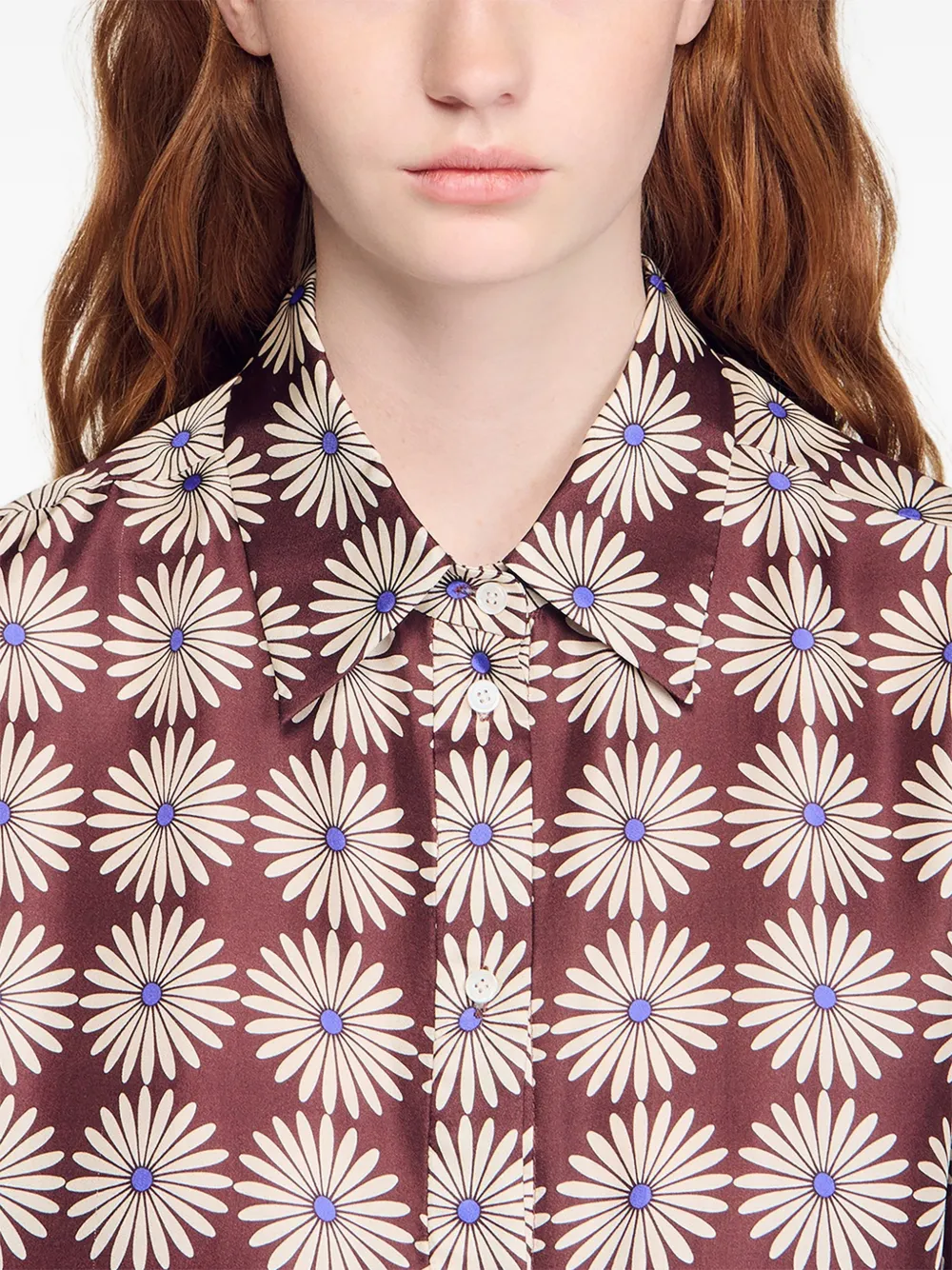 Рубашка с цветочным принтом SANDRO, коричневый