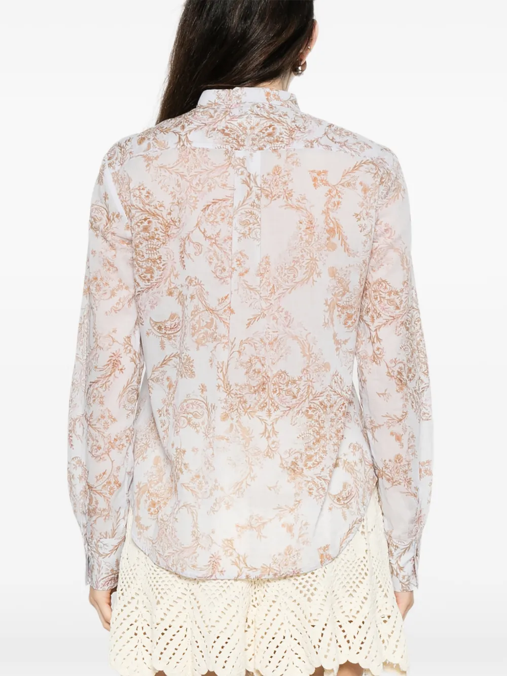 Розовая рубашка с цветочным принтом, застежкой на пуговицы, длинными рукавами, манжетами на пуговицах и классическим воротником