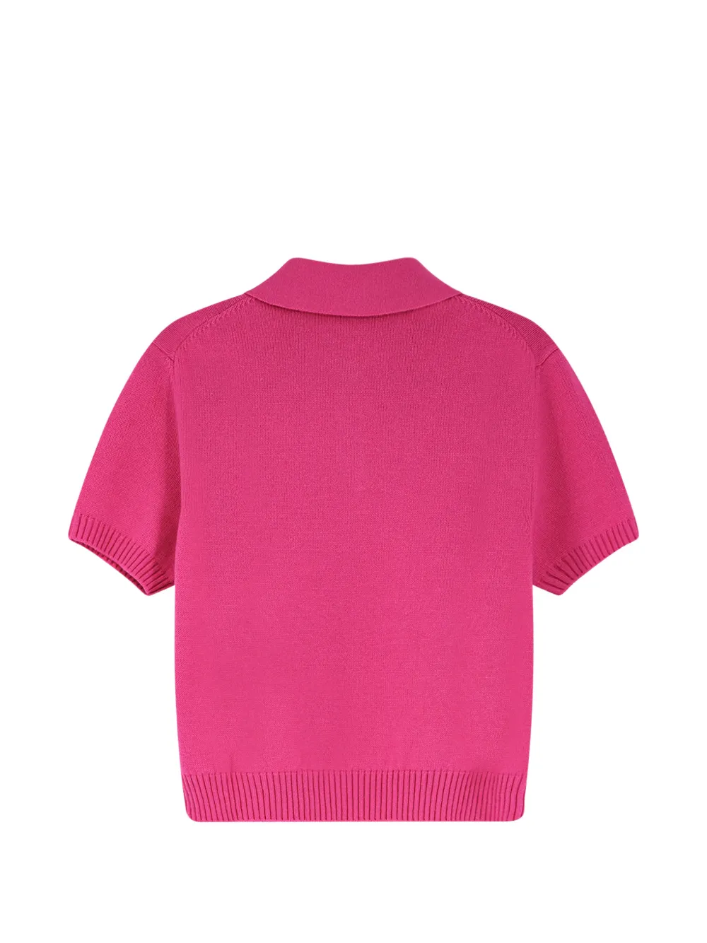 Фуксия-розовый поло с воротником, короткими рукавами, трикотажной вязкой, застежкой на пуговицы, вышитым логотипом