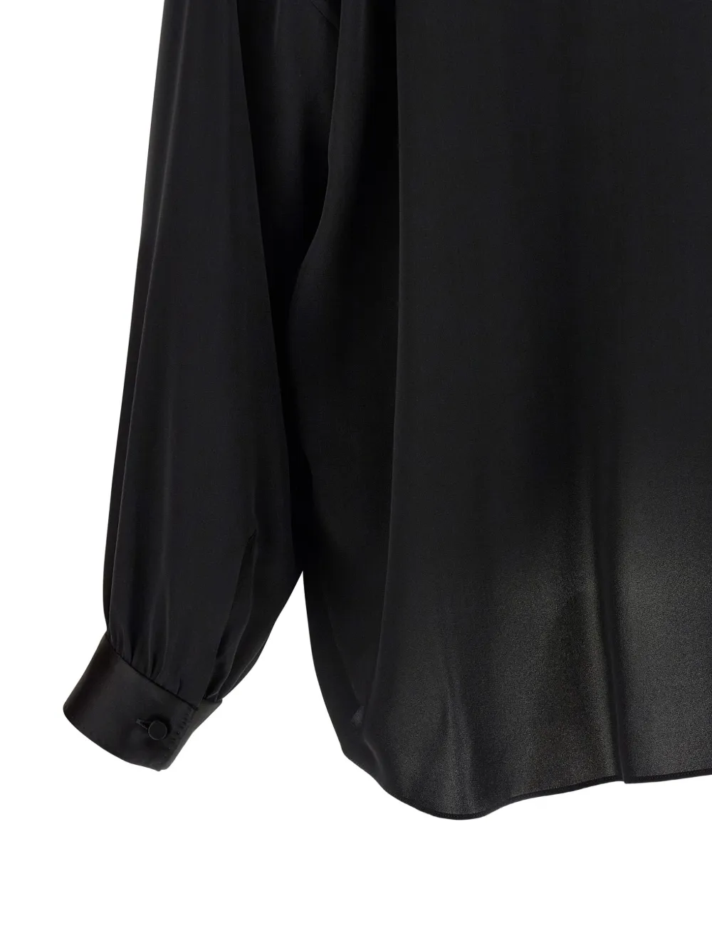 Черный V-образный вырез, атласная отделка, длинные рукава, манжеты на пуговицах