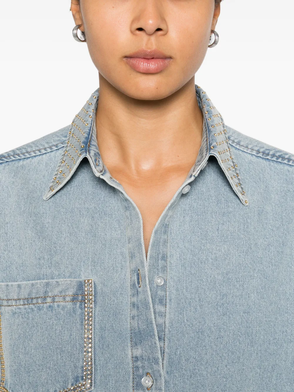 Рубашка асимметричного кроя со стразами SANDRO, синий