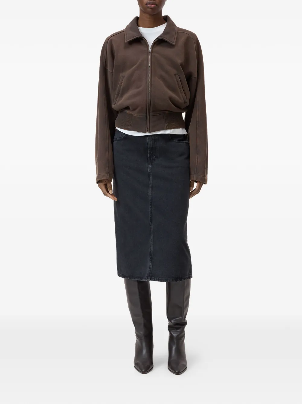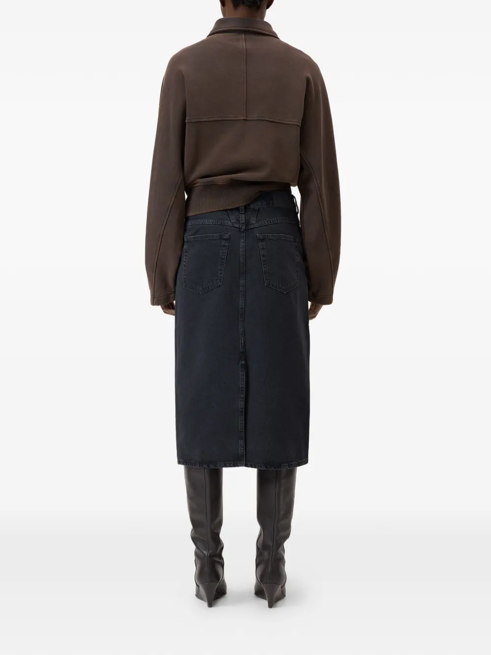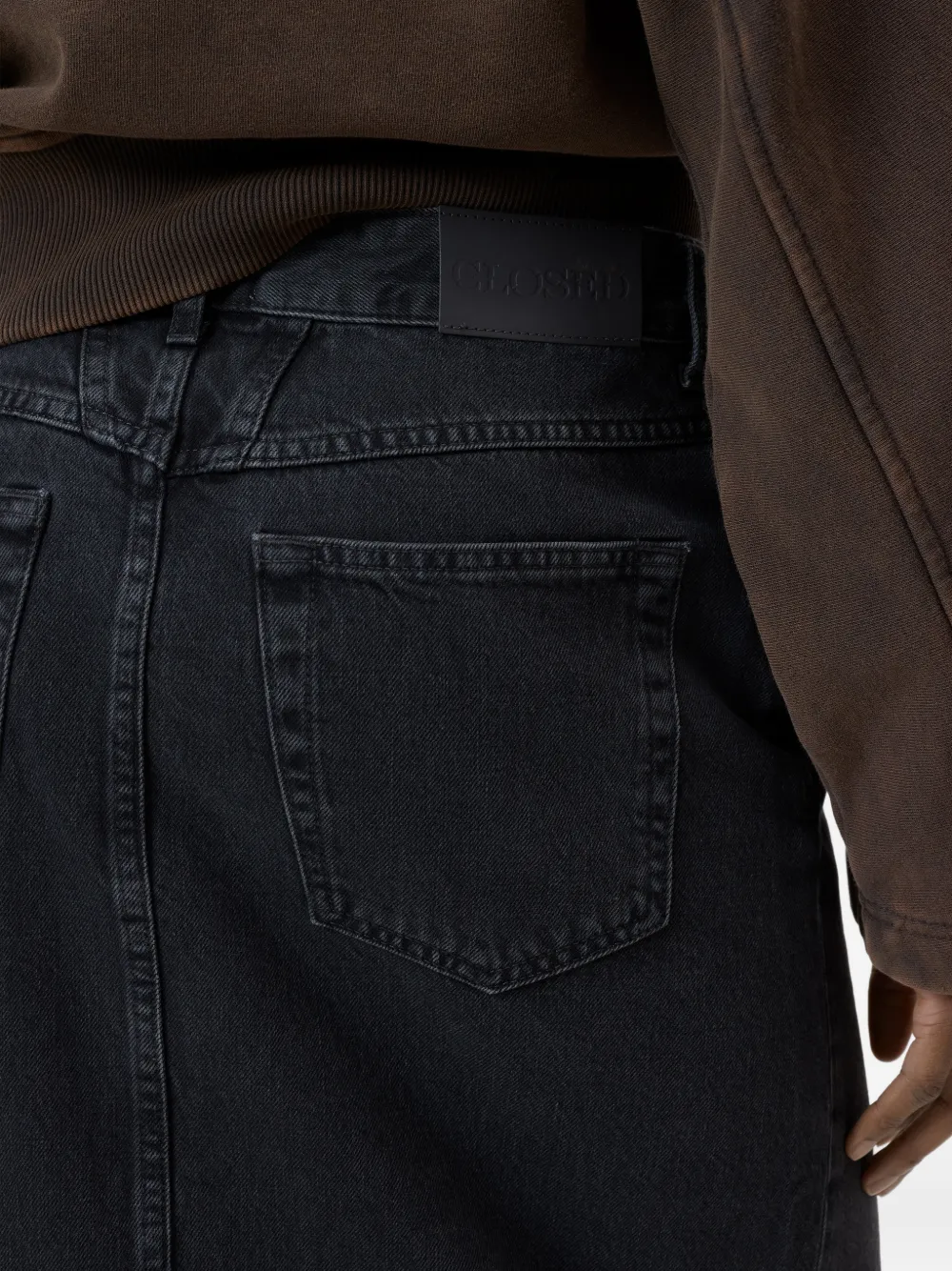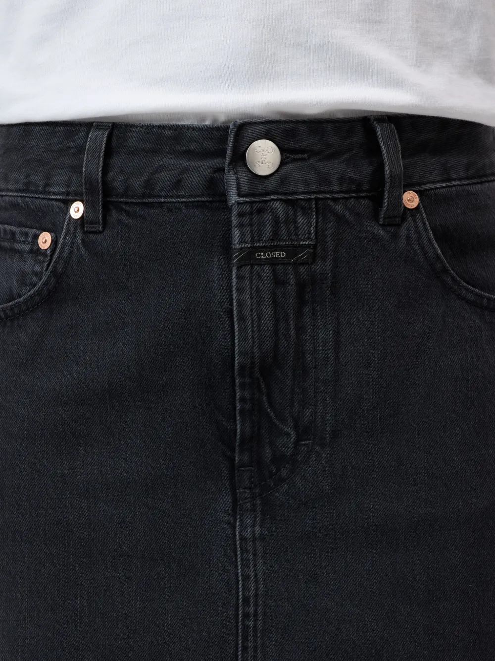 Темно-серый миди, разрез сзади, шлевки для ремня, застежка на пуговицы