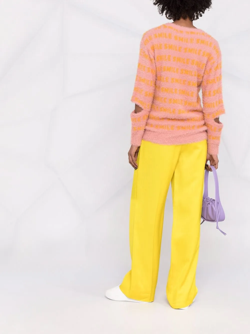 Принт с надписью, круглый вырез, длинные рукава, вырезные детали и прямой подол. Узнать больше о том, какие товары получают отметку «Ответственный выбор», можно из материала «Как мы оцениваем экологичность и этичность».