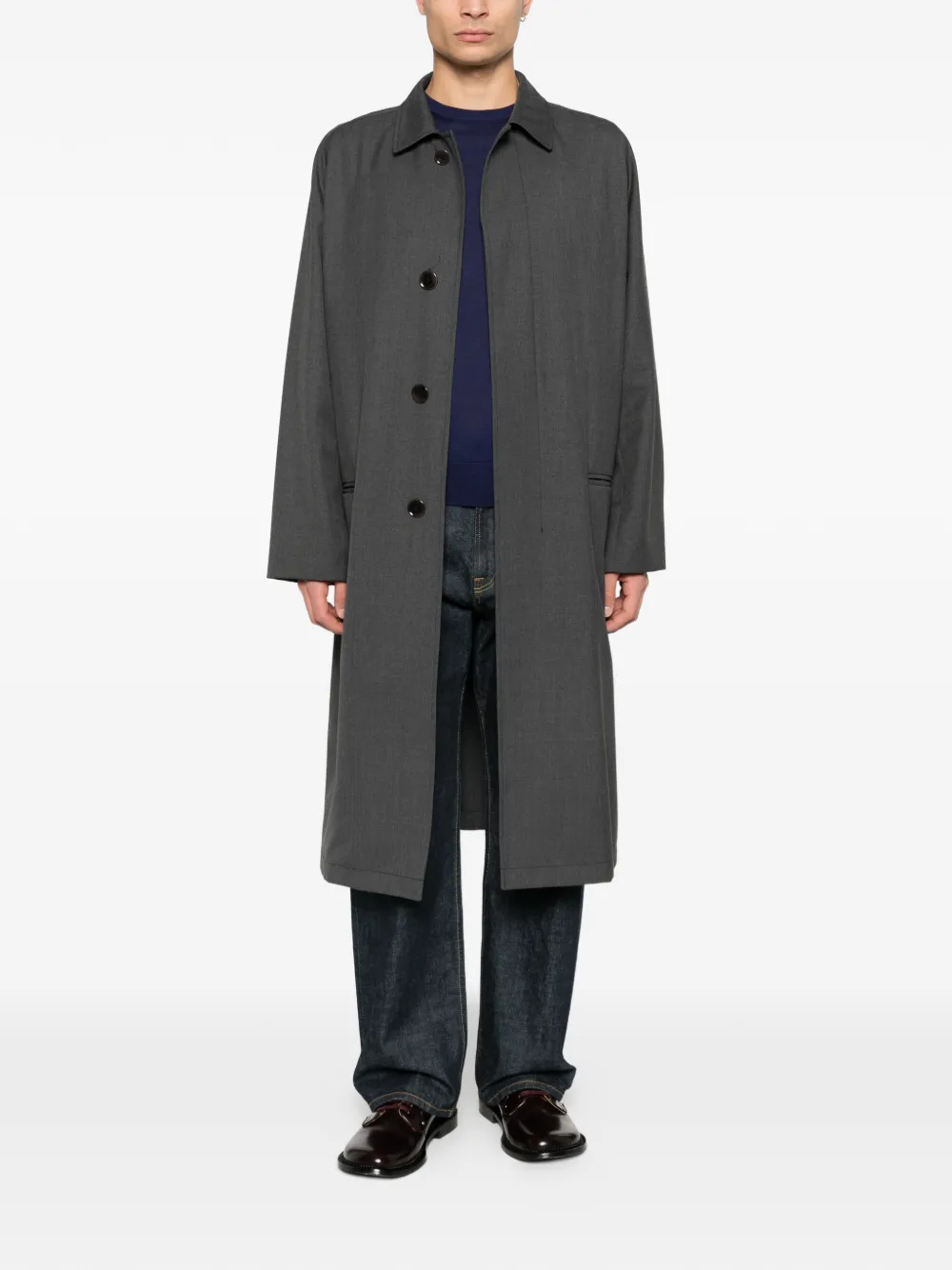 Темно-синего цвета, с круглым вырезом и длинными рукавами