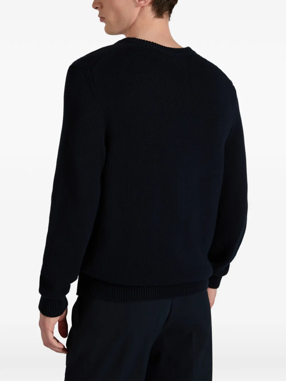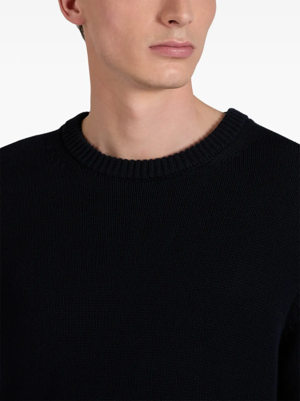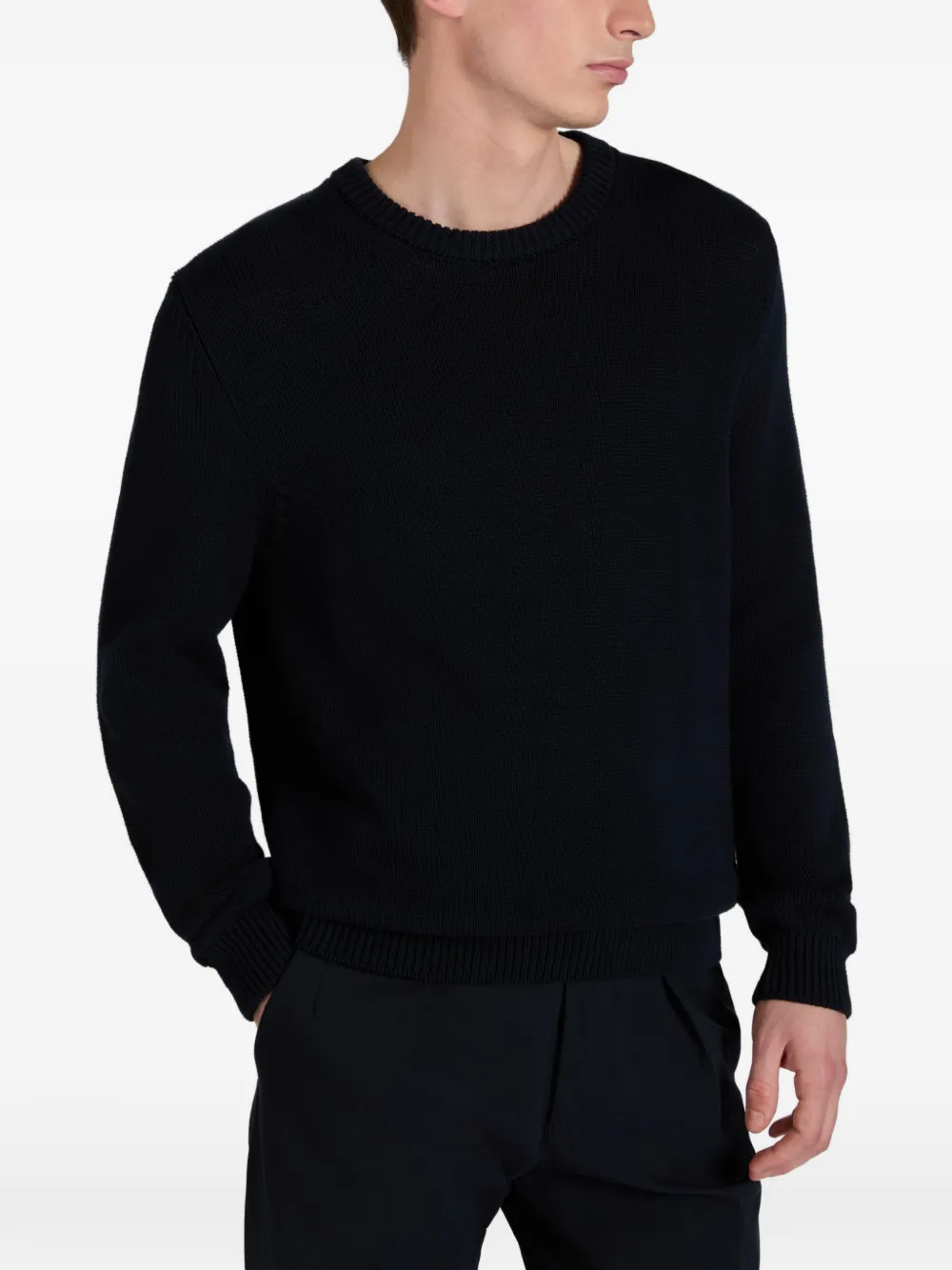 Темно-синий хлопковый вязаный свитер с круглым вырезом