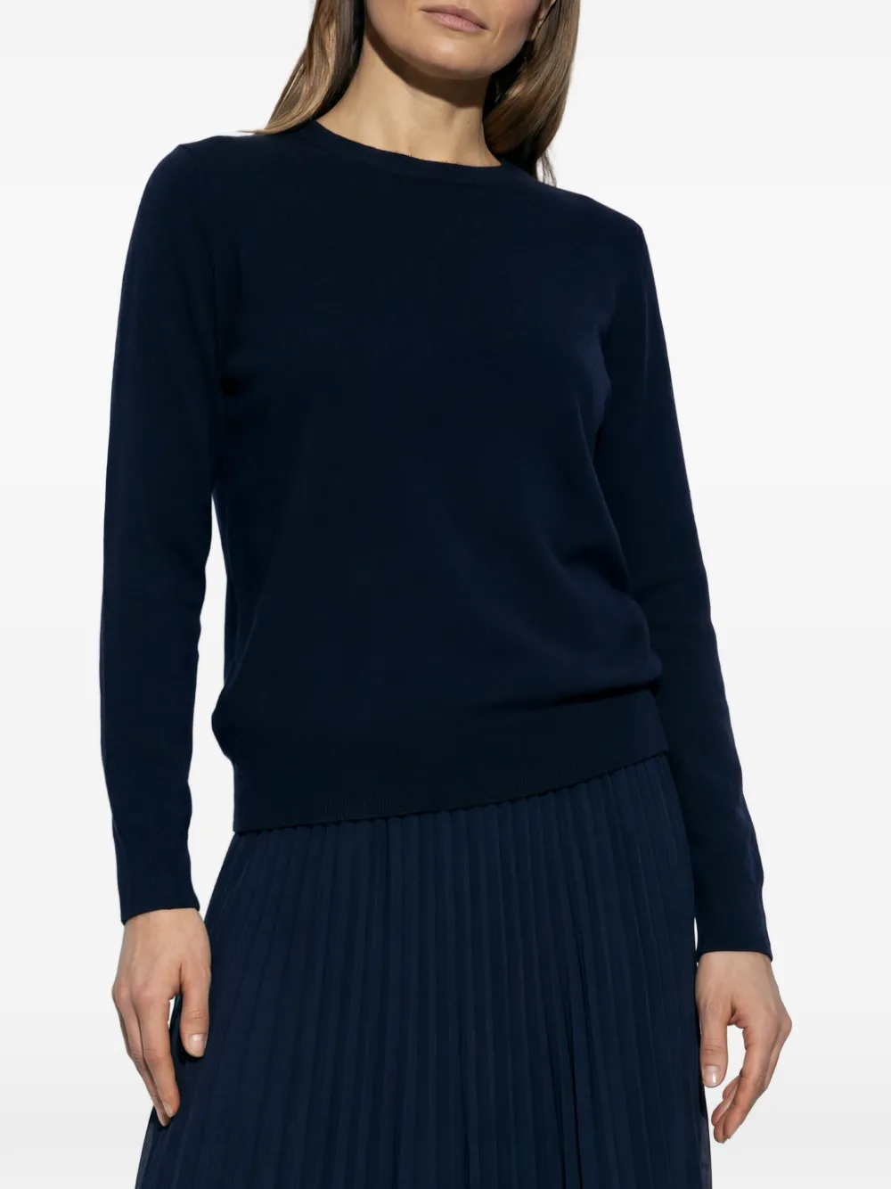 Синий шерстяной джемпер с круглым вырезом, длинными рукавами, манжетами на пуговицах и ребристым краем