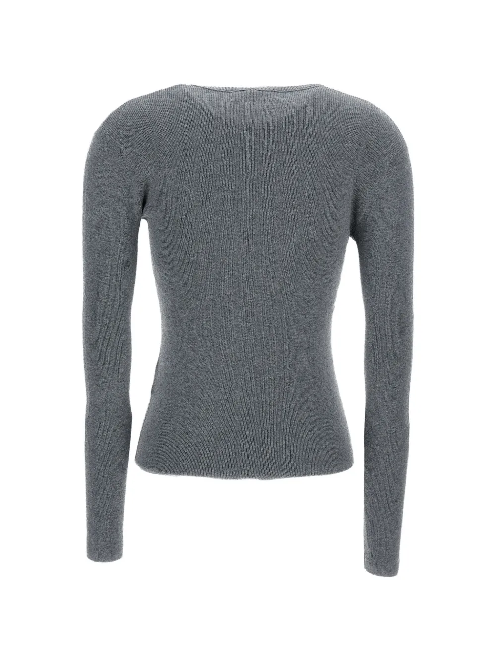 Серый вязаный джемпер в рубчик с круглым вырезом и длинными рукавами
