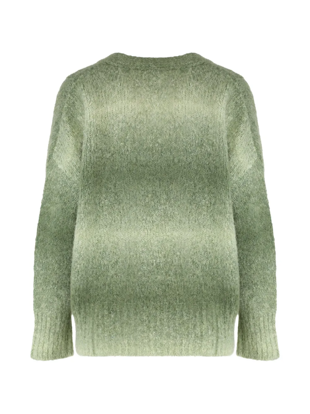 Зеленый кардиган с застежкой на пуговицы, V-образным вырезом, длинными рукавами и ребристым краем