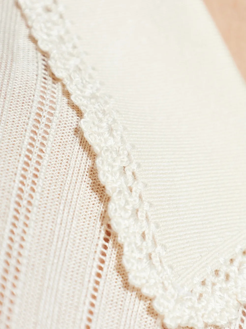 Айвори, гофрированная отделка, застежка на пуговицы, длинные рукава, рубчатая вязка, классический воротник