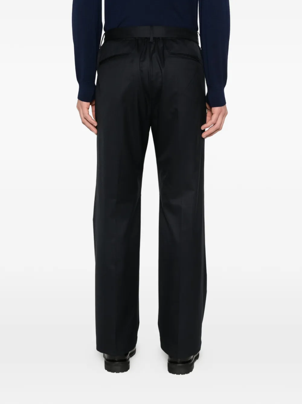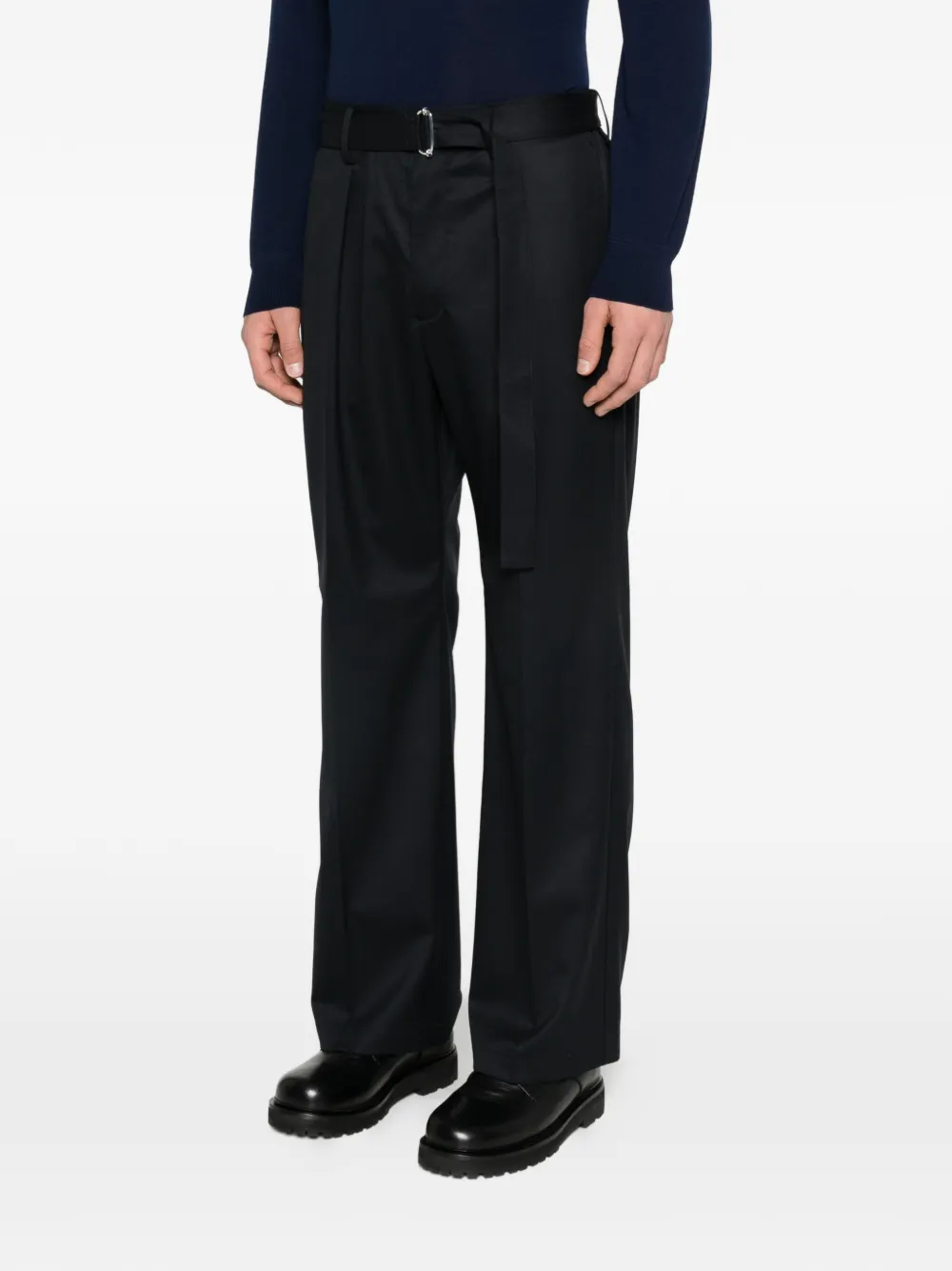 Синие плиссировки, шлевки для пояса, застежка на крючок, стандартная посадка, прямые брюки