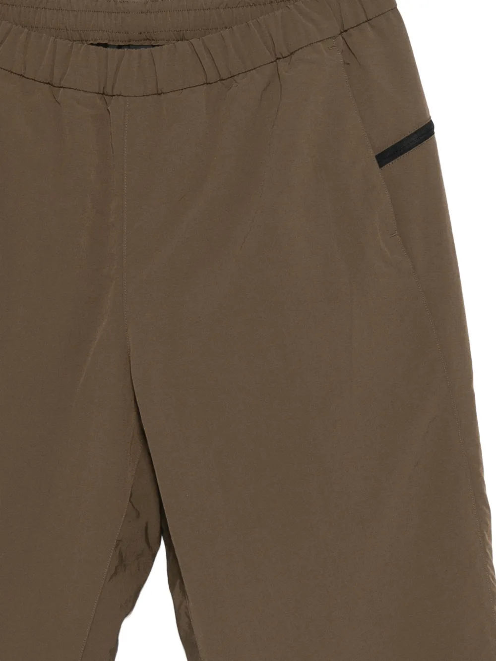 Коричневый эластичный пояс, внутренняя шнуровка, задние карманы на молнии