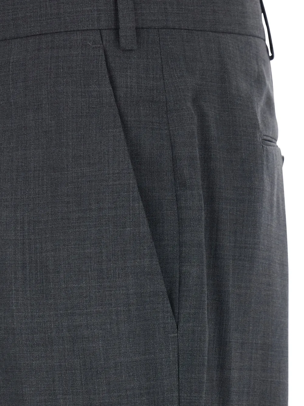 Серая, шлевки для ремня, застегивается на пуговицы, задние прорезные карманы, чистая шерсть