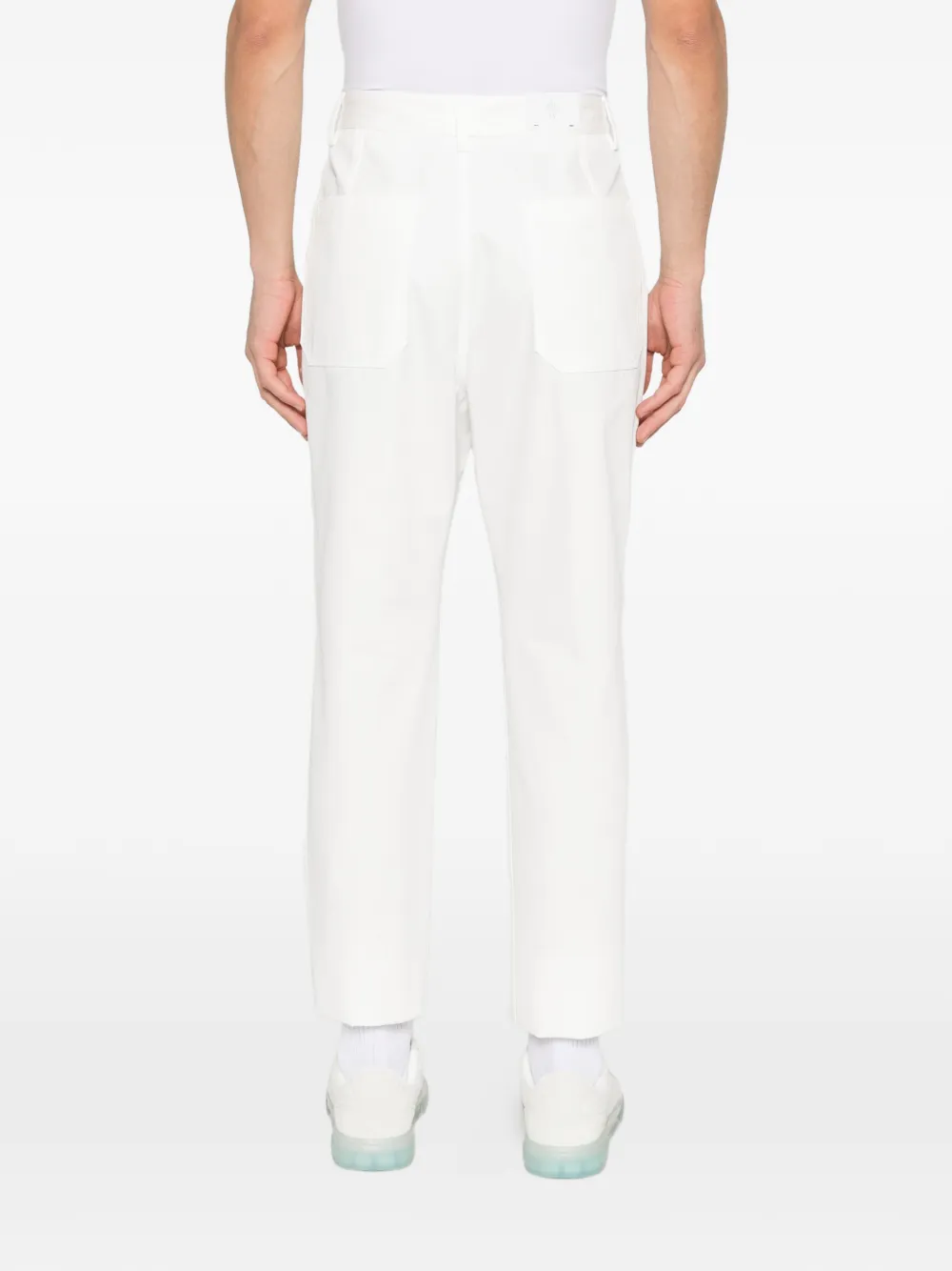 Белые, с передними складками, передними карманами, шлевками для ремня