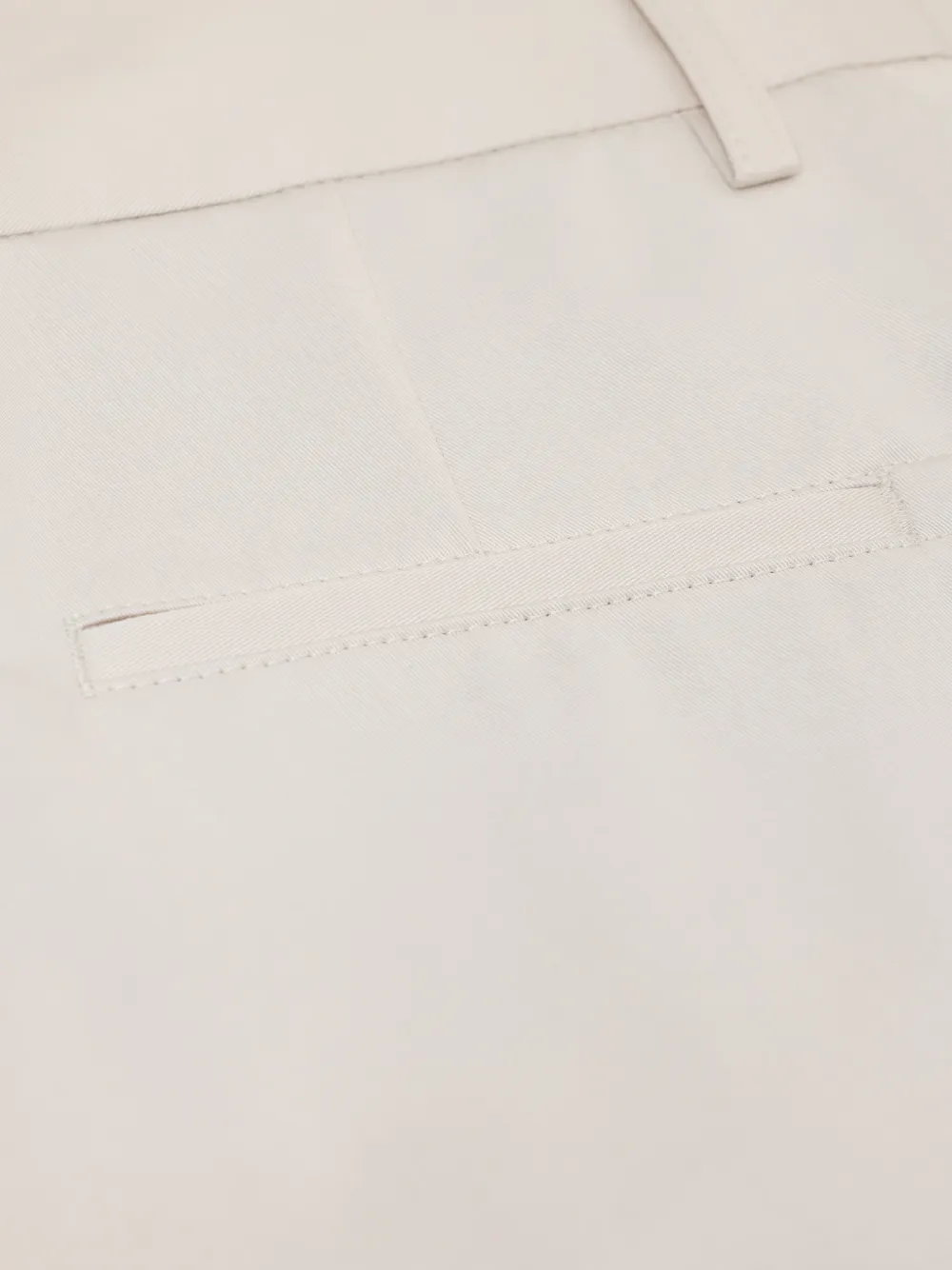 Слоново-косточные плиссировки, застежка на пуговицы, шлевки для ремня, задний прорезной карман, боковые карманы в шве