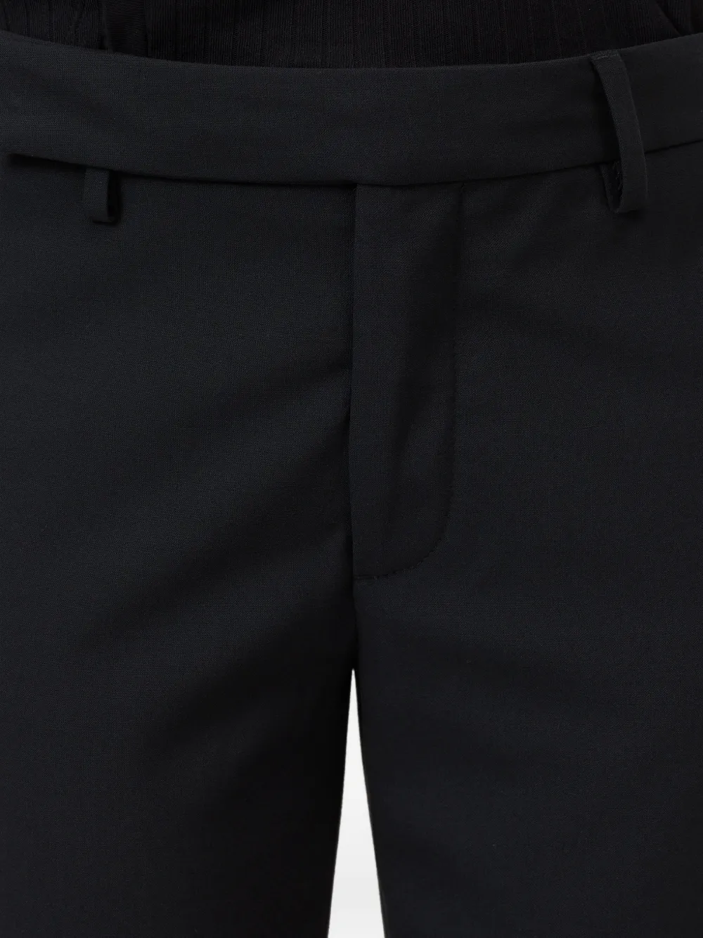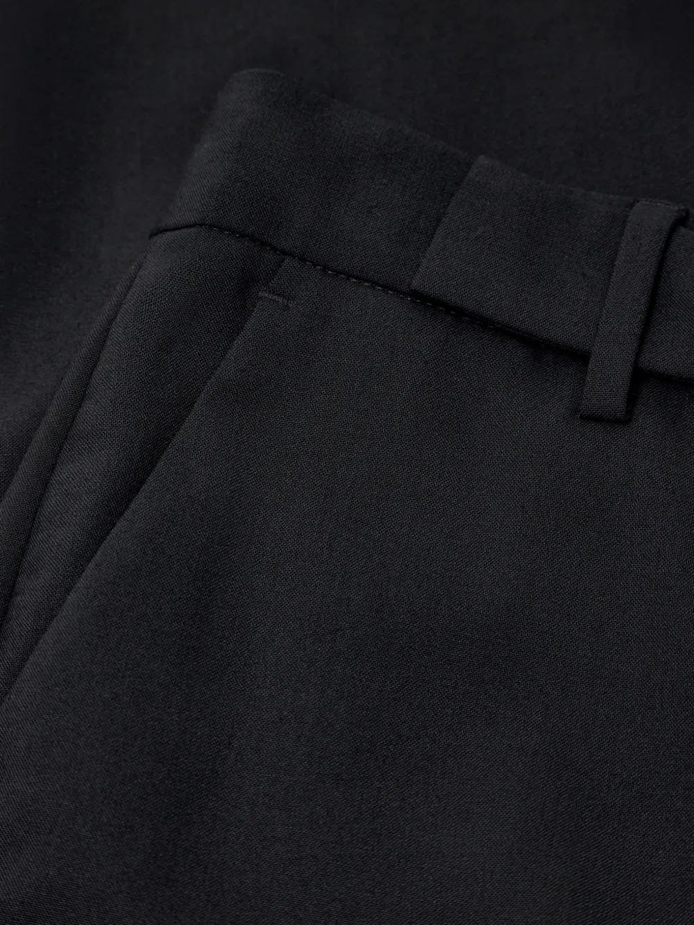 Черные шлевки для ремня, два задних кармана, боковые карманы в швах, застежка на молнии