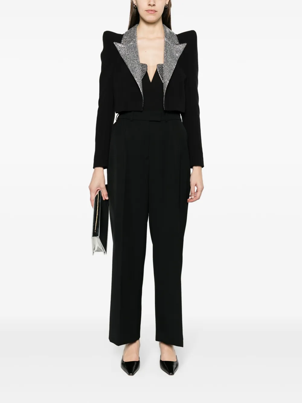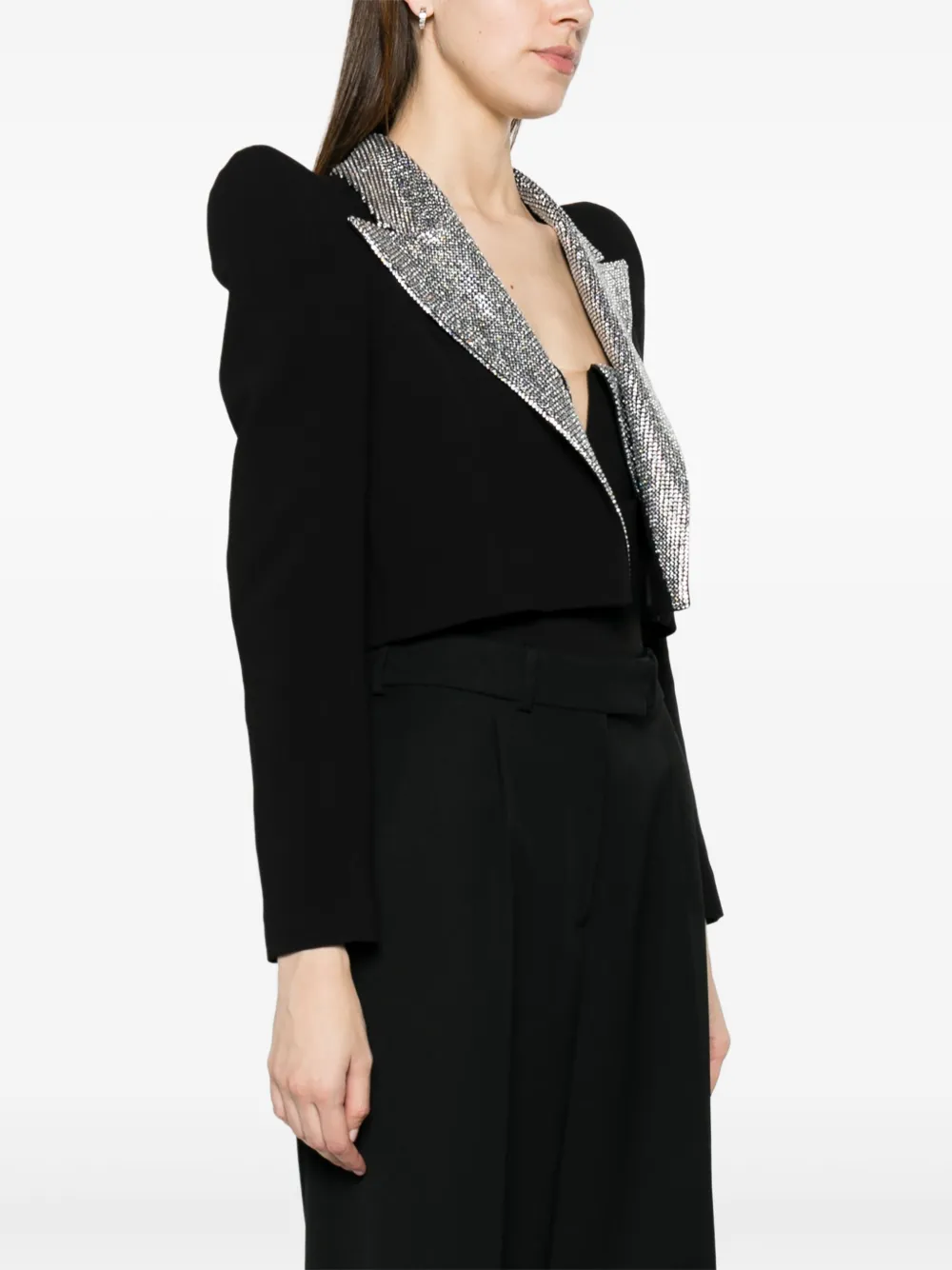 Укороченный блейзер с кристаллами NISSA, черный