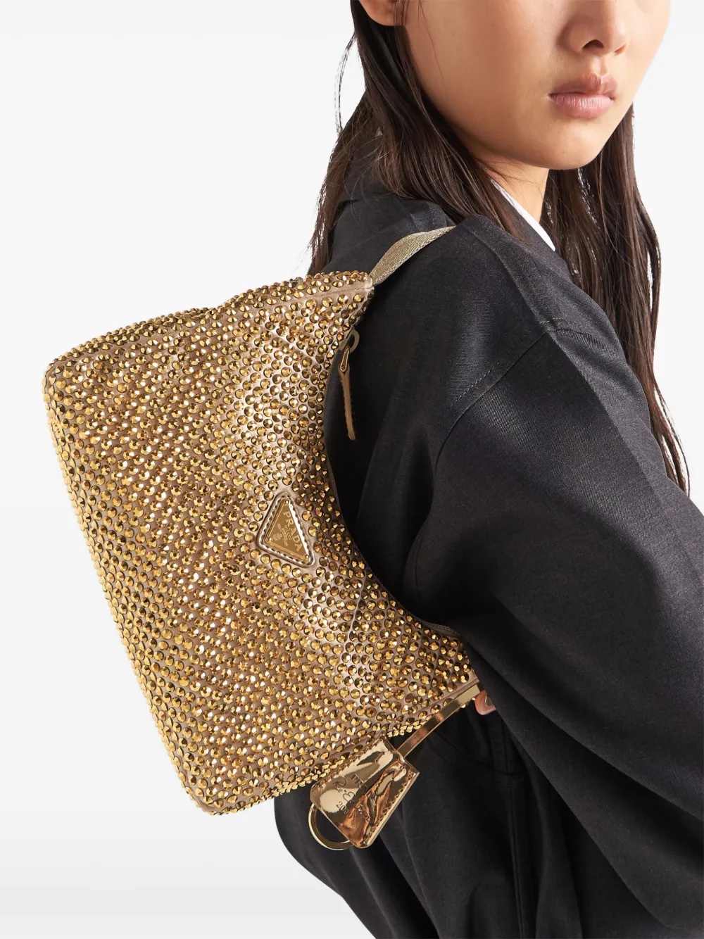 Мини-сумка re-edition с кристаллами Prada, золотистый 215 426₽