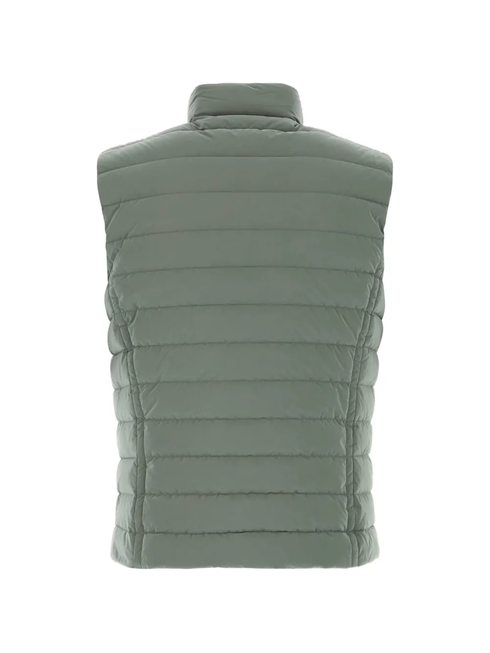 Шалфейно-зеленый цвет, стеганная отделка, дизайн с наполнителем, без рукавов, застежка-молния, стойка-воротник, два боковых кармана