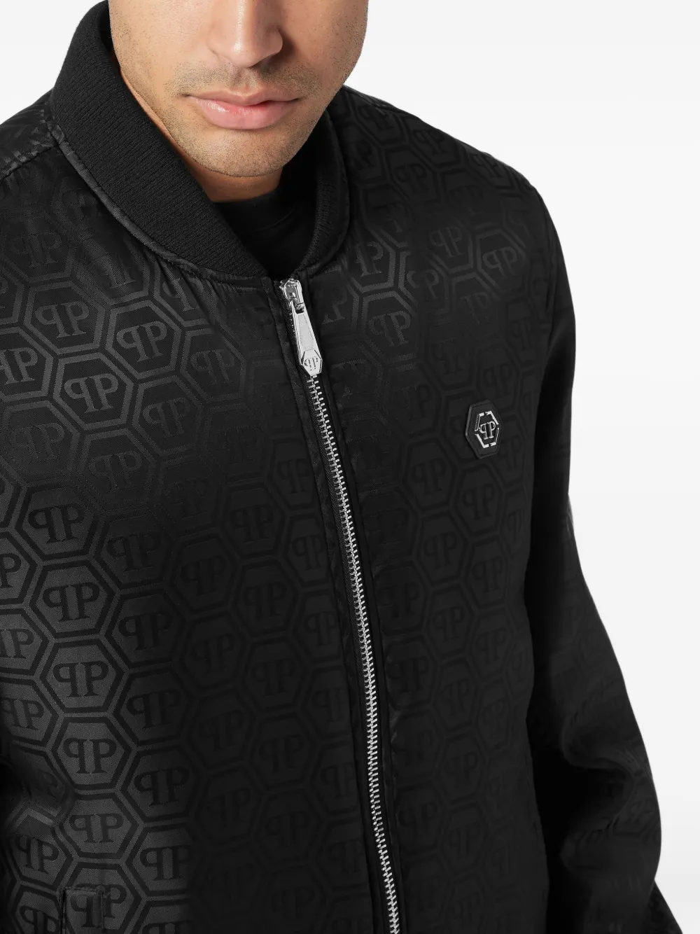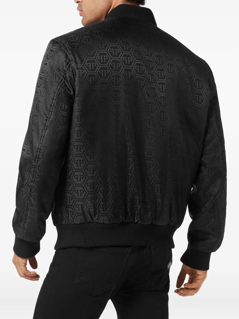 Жаккардовый бомбер с монограммой Philipp Plein, черный