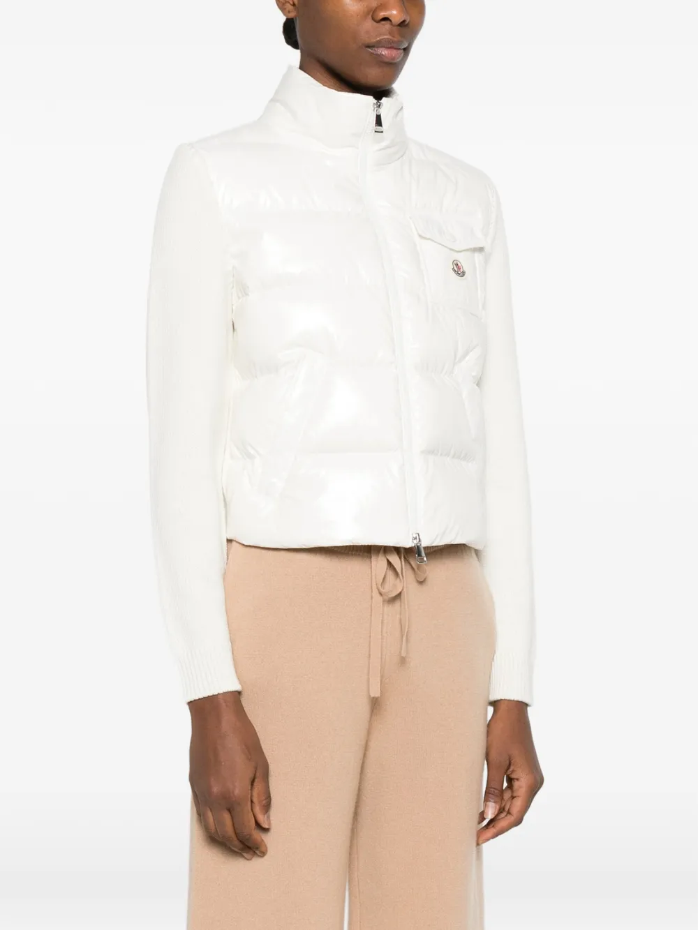 Белый цвет, нашивка-нагрудный карман, нашивка с логотипом, застежка-молния, вязаные рукава