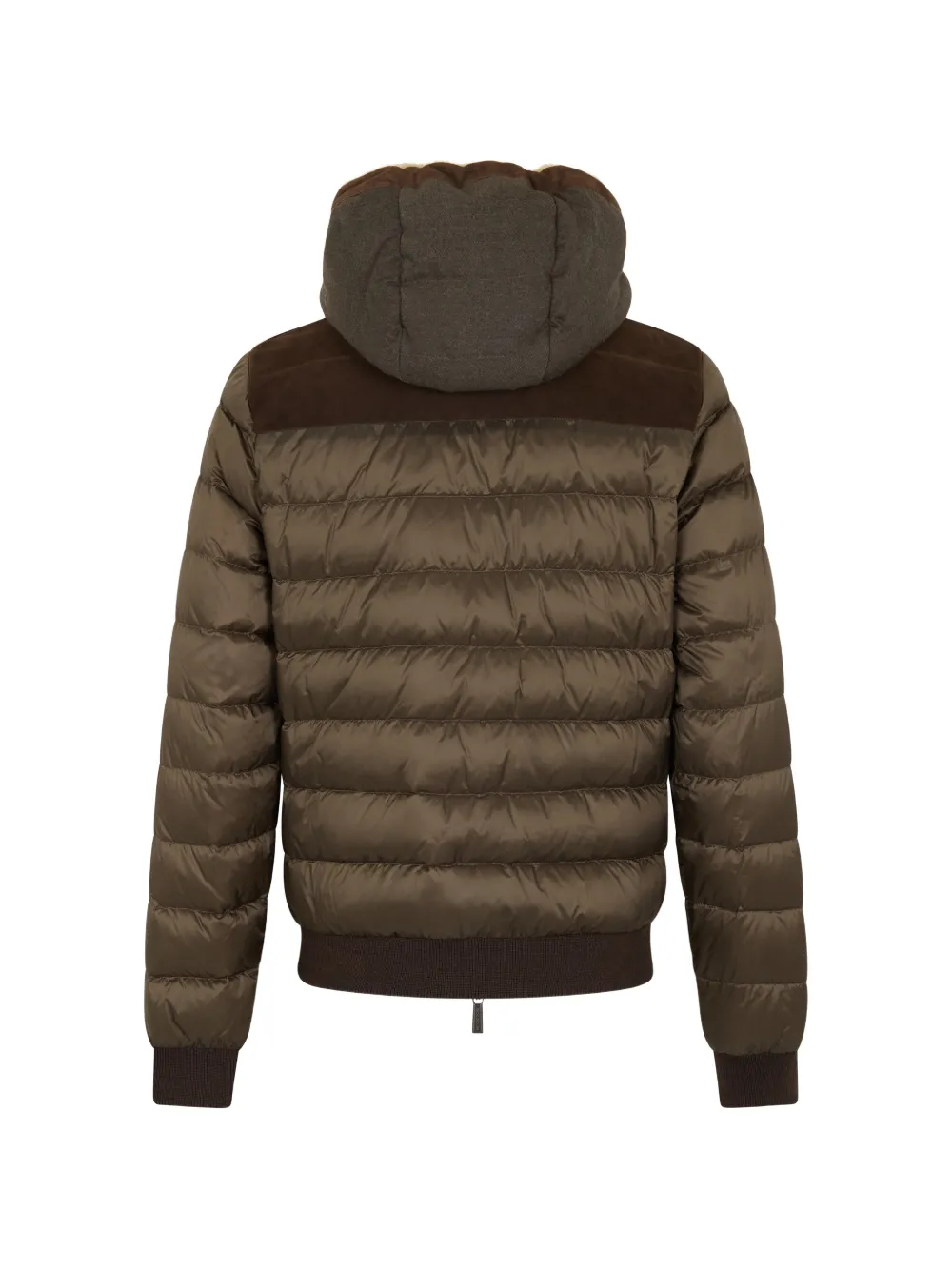 Зеленая стеганая куртка с застежкой на молнию, капюшоном и замшевыми вставками