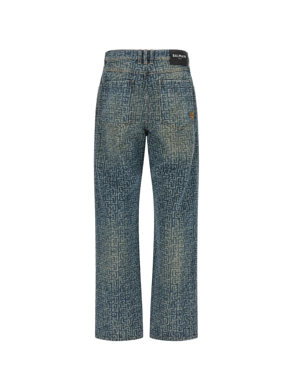 Джинсы с монограммой и эффектом стирки камнями BALMAIN, синий