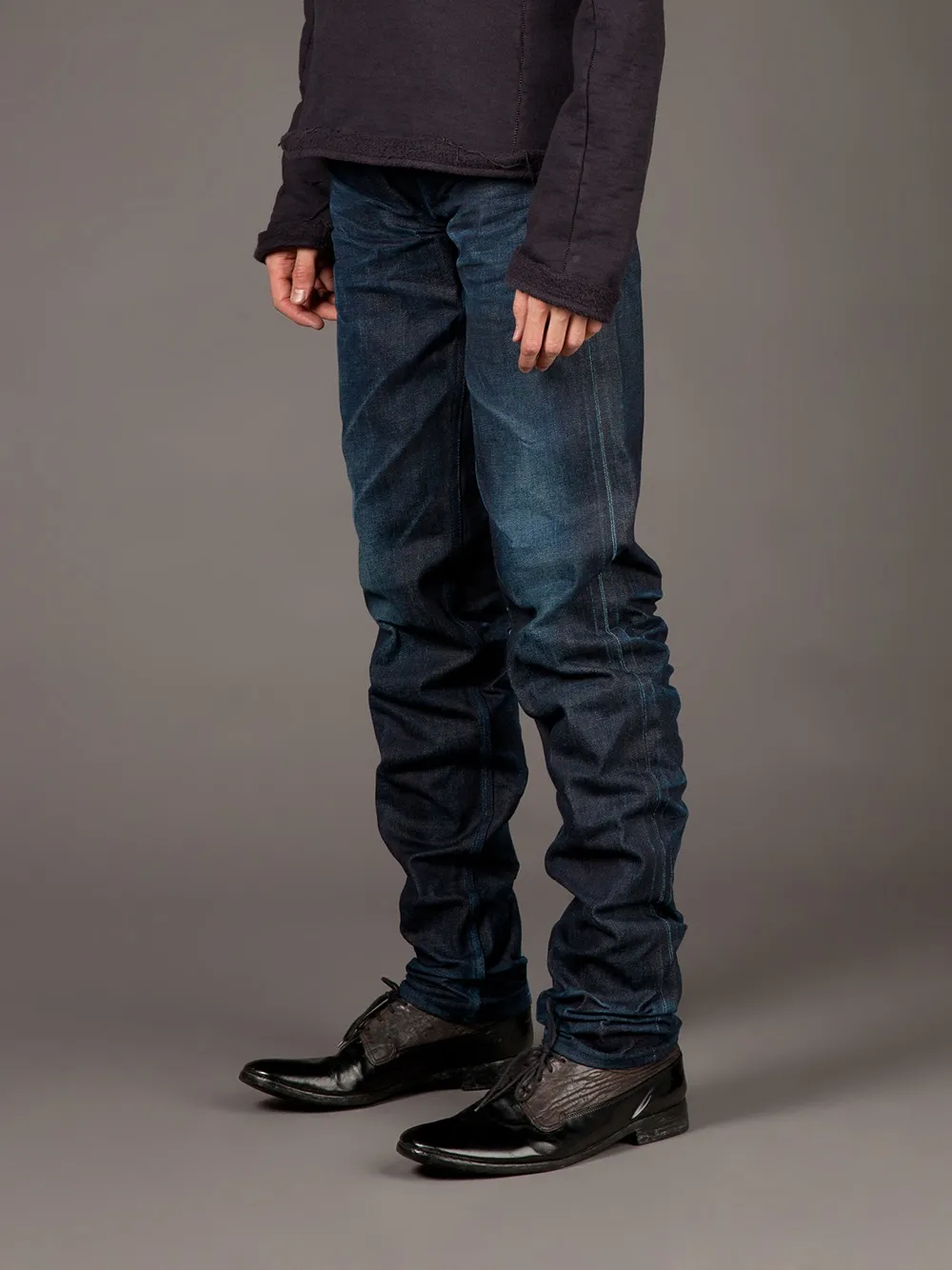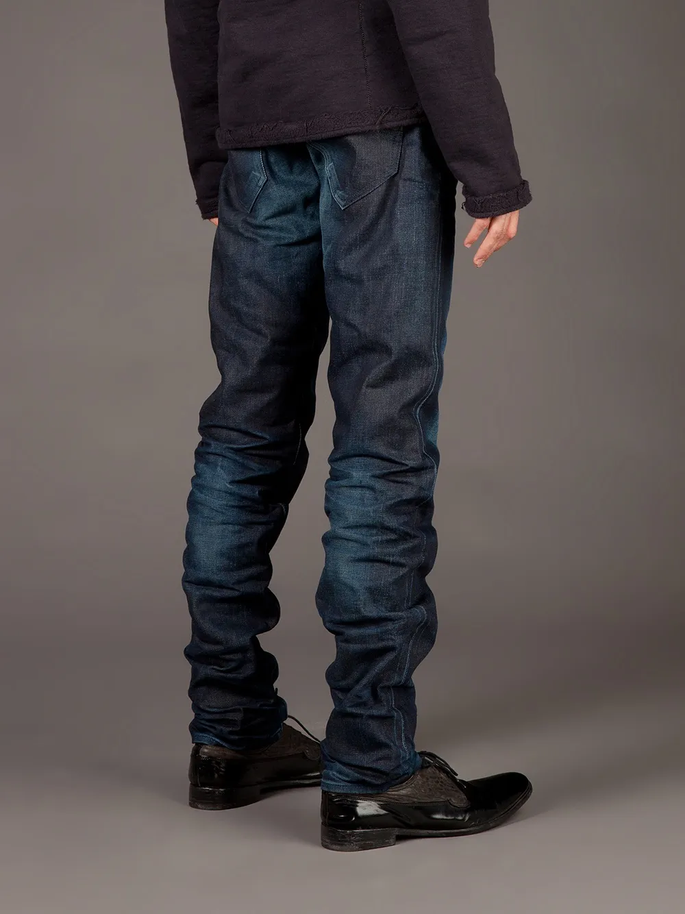 Distressed jeans от Leclaireur. Прямые брючины, потайная застежка спереди, петли для ремня, классическая пятикарманная модель и складки на бедрах. Цвет: синий.