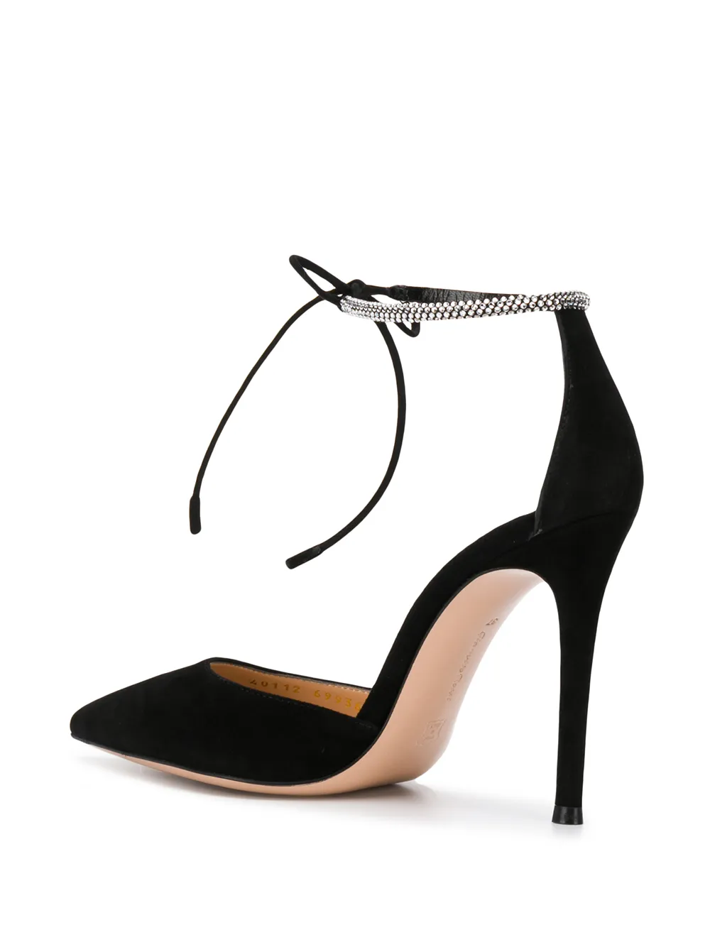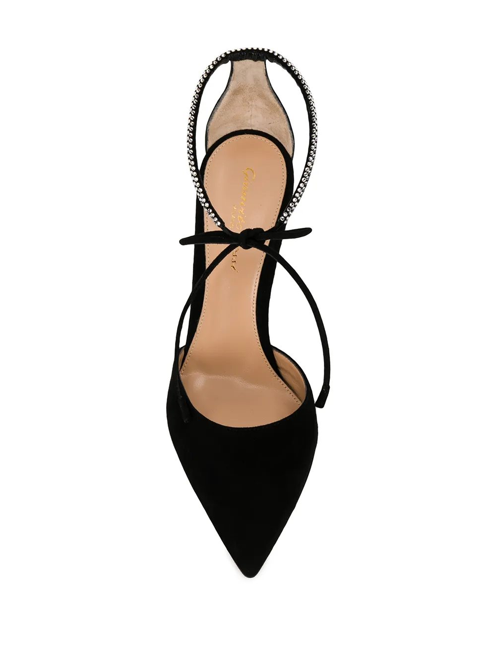 Туфли с кристаллами от Gianvito Rossi (Джанвито Росси). Заостренный носок, застежка-завязка, фирменная стелька и высокая шпилька. Цвет: черный.
