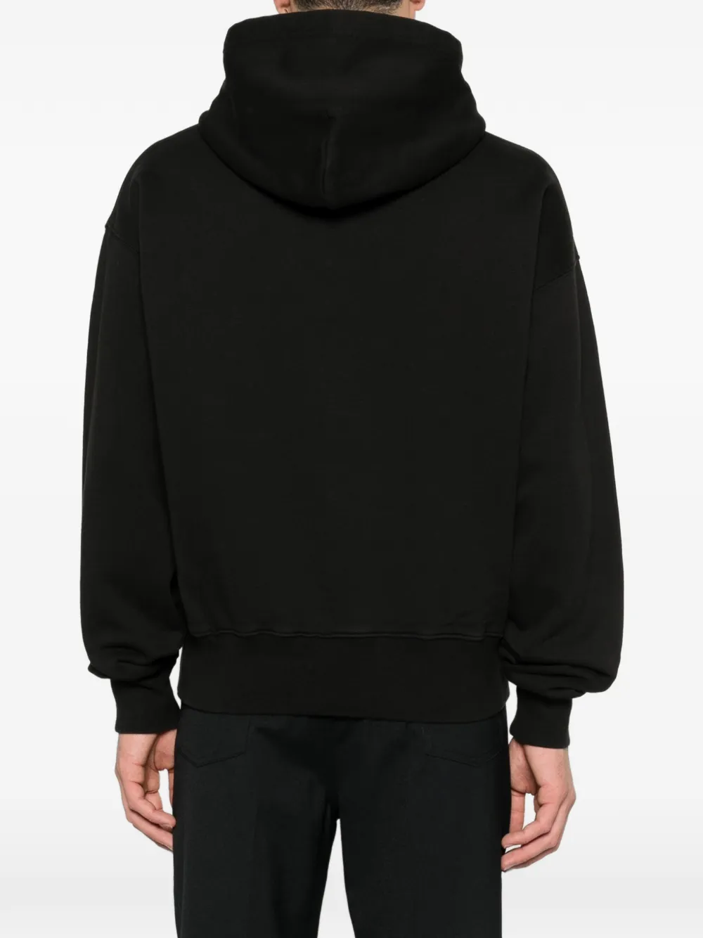 Черная худи с капюшоном, длинными рукавами, ребристыми манжетами и подолом