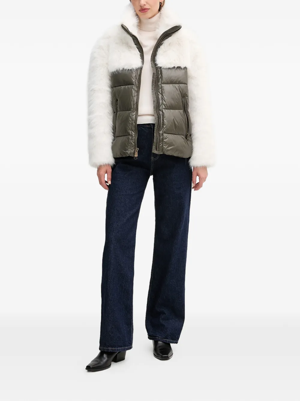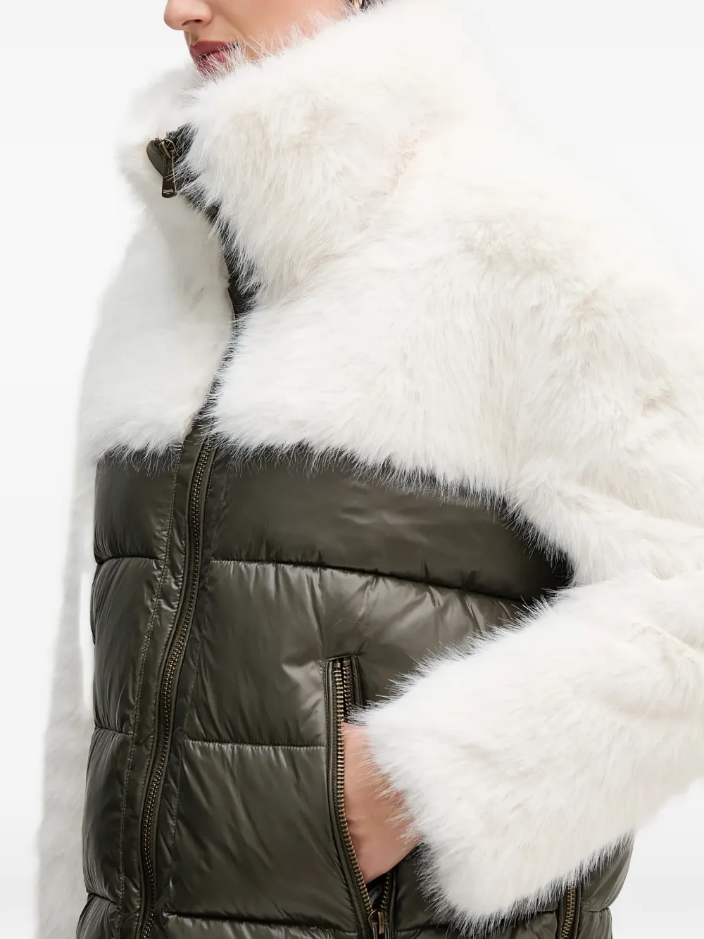 Зеленые и белые панели из искусственного меха, застежка-молния, высокий воротник, боковые карманы на молнии