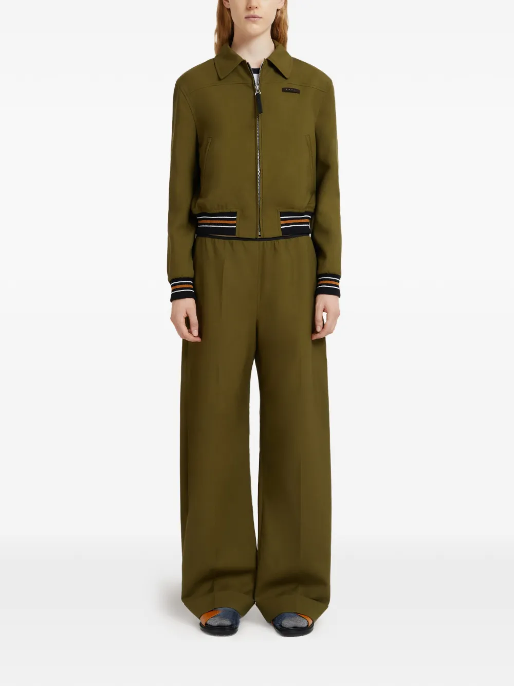 Полосатая куртка в рубчик Marni, зеленый