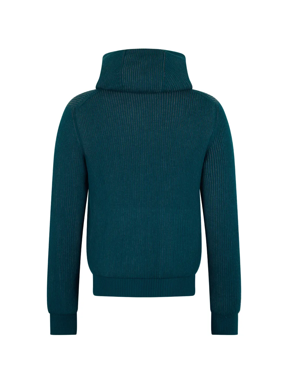 Зеленая вязаная кофточка в рубчик на молнии с капюшоном, длинными рукавами и прямым подолом
