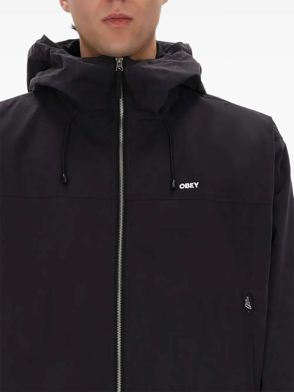 Черный худи на молнии, боковые карманы на молнии, логотип, кулиска на подоле