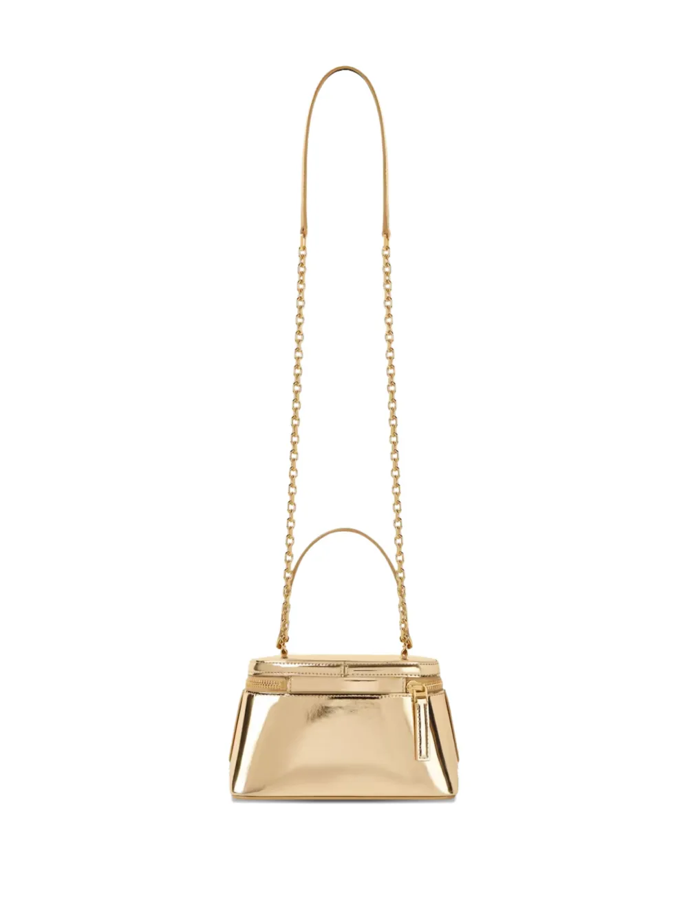 Золотая сумка с верхней ручкой, застежкой-молнией, цепочкой-ремешком на плечо и внутренним открытым карманом