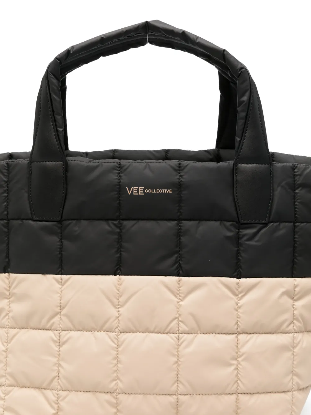 Бежевый и черный топ с простеганным дизайном, верхняя ручка, застежка на молнии, внутренний карман на молнии