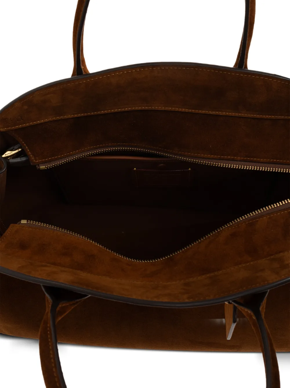 Коричневые верхние ручки, съемный ремешок, подвеска-брелок, застежка-молния, фурнитура золотистого цвета