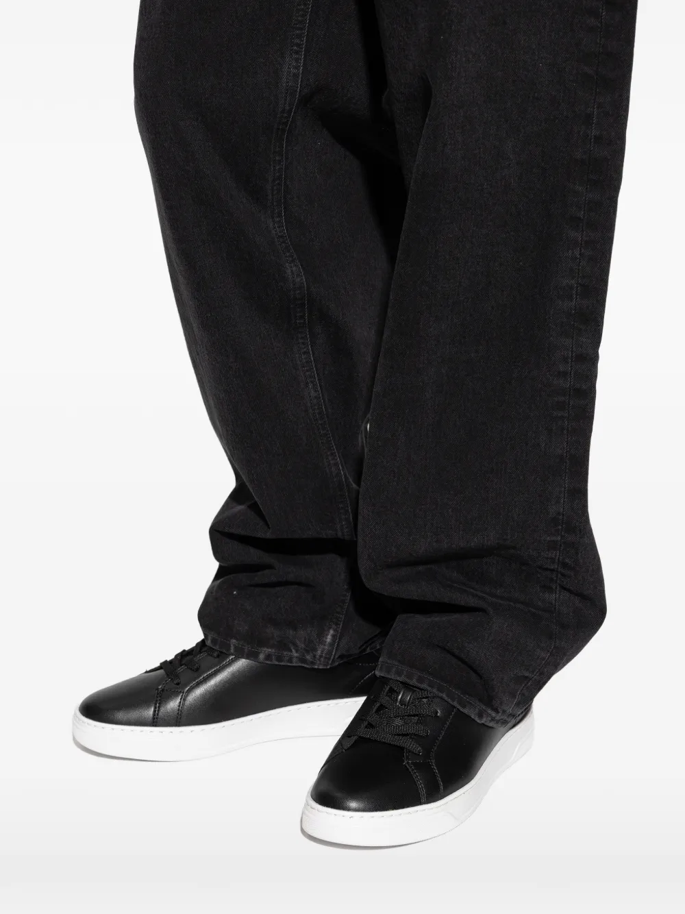 Черная кожа, круглый носок, шнуровка, однотонная прострочка, брендированная стелька