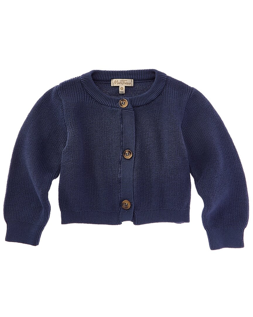 Представляем кардиган Mon Tresor крупной вязки - незаменимое дополнение к гардеробу любой маленькой девочки. Этот уютный кардиган имеет классический круглый вырез и застежку на пуговицах для удобства ношения. Изготовленный из 100% хлопка, этот кардиган одновременно удобен и стилен. Красивый синий цвет добавит яркий акцент любому наряду. Кардиган легко стирается в машинке, что делает его идеальным выбором для любого случая.