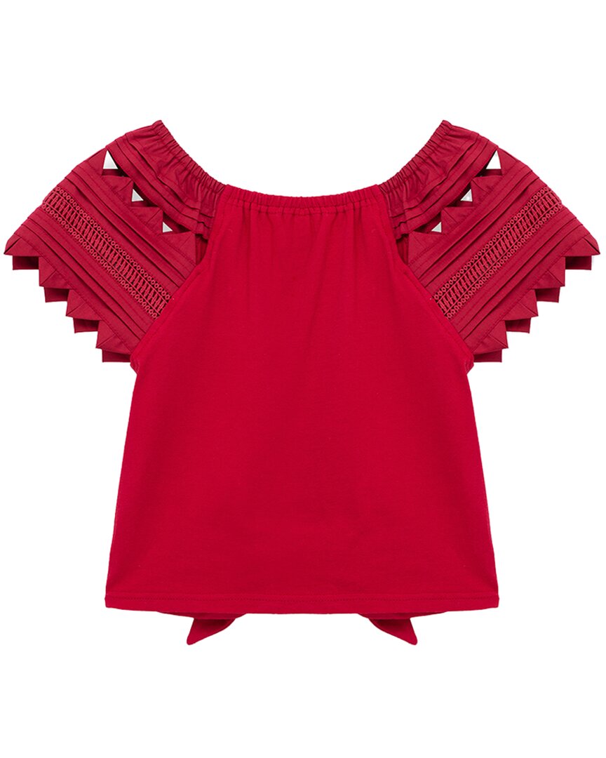 Представляем вам стильный и забавный топ Habitual Novelty для девочек - отличное дополнение к гардеробу любой юной модницы. Этот топ яркого красного цвета с игривым трикотажным лифом и модными рукавами с вырезами. Завязки спереди добавляют нотку игривости, а удобный фасон позволяет легко надевать его. Изготовленный из 100% полиэстера, этот топ одновременно комфортен и долговечен. Можно стирать в машине, импортирован, топ Habitual Novelty идеально подходит как для повседневной носки, так и для особых случаев.