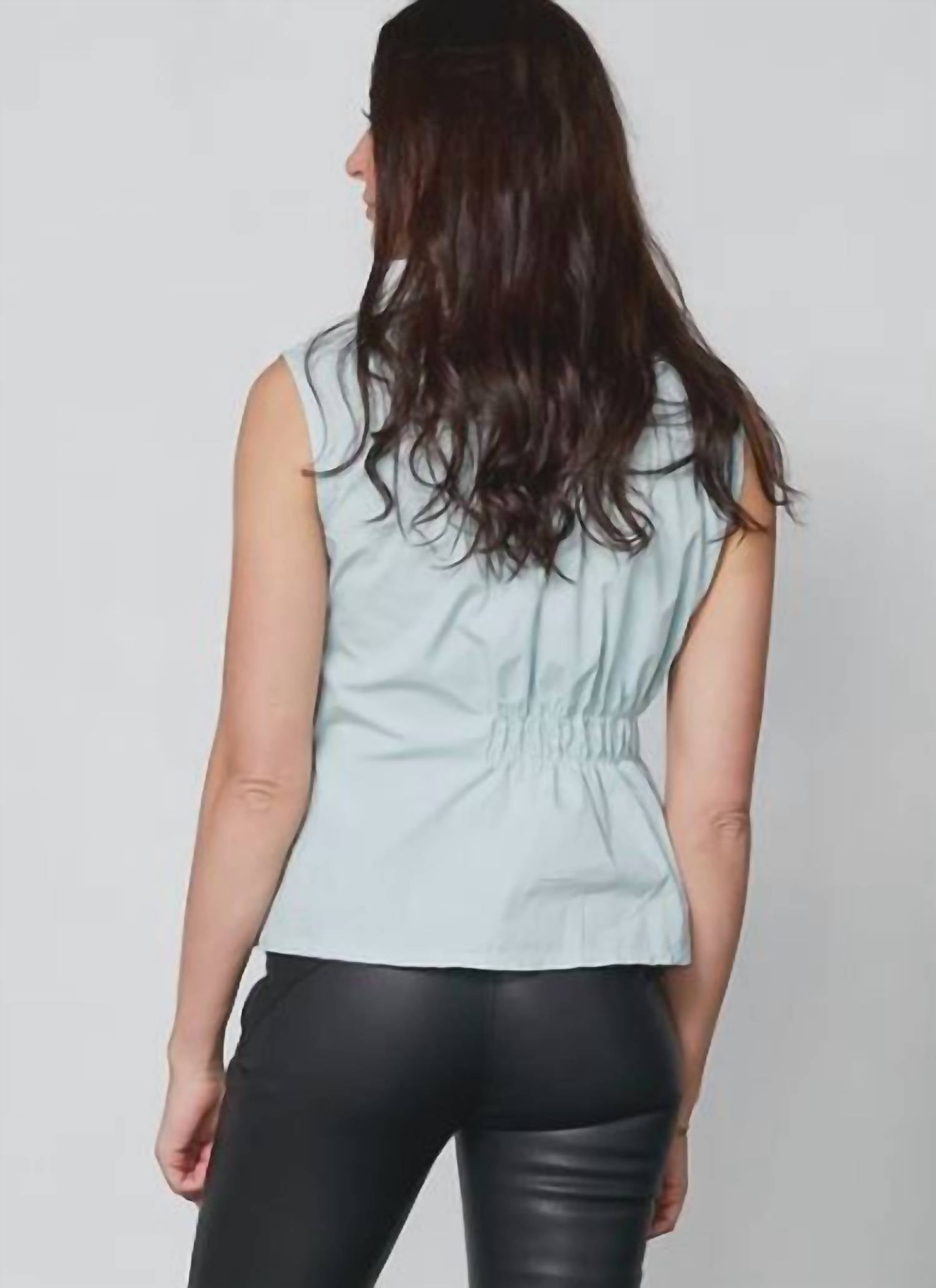 Блузка, которая никогда не выйдет из моды. Представляем блузку Yelda от NU Denmark - шикарную блузку без рукавов освежающего мятно-голубого цвета. Изготовленная из 100% хлопка, она имеет присборенную талию для идеальной посадки и незаметную застежку на пуговицы сзади. Без лишних деталей, таких как карманы, она ориентирована на элегантность и простоту. Уход за этой однотонной блузкой: машинная стирка при 30 градусах.
