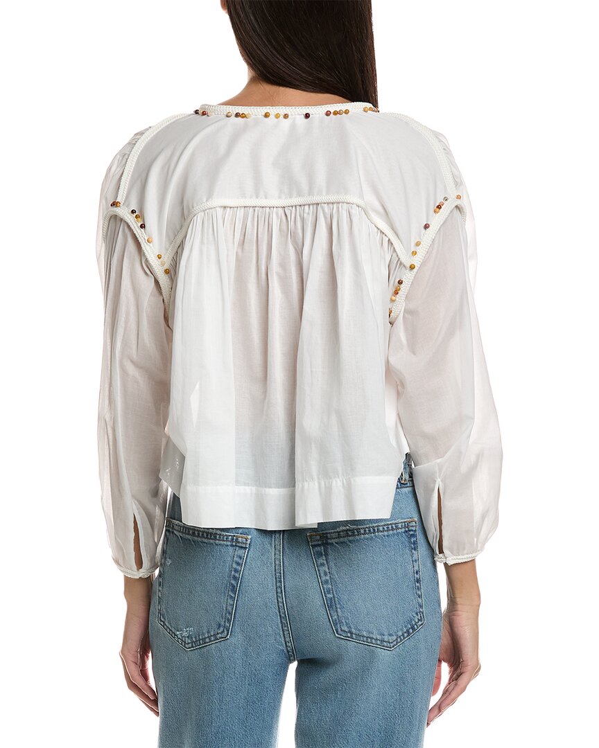 В топе ALC Jodie вы будете выглядеть невероятно стильно. Этот современный и удобный топ имеет разрез на вырезе с завязками и украшен бисерной отделкой, придающей ему изысканный вид. Изготовленный из 100% хлопка, этот топ одновременно удобен и стилен. Сочетайте его с любимыми джинсами или юбкой для создания безупречного образа. Только химчистка. Импортный товар.