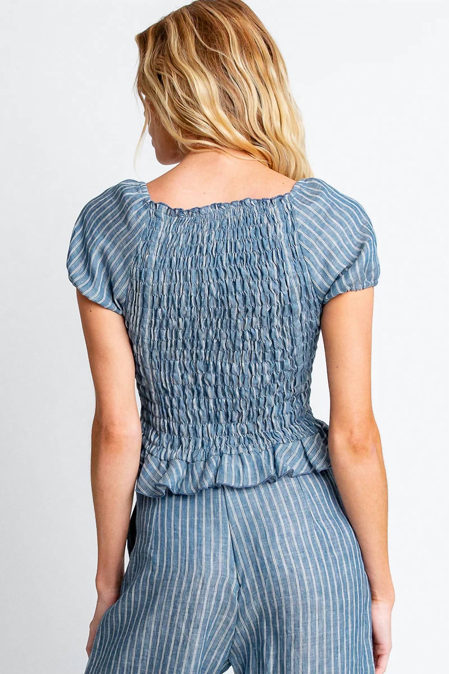 Сочетайте эту блузку с любимыми джинсами и шлепанцами для следующего девичника. Откройте для себя укороченную блузку Demi Top от Monte, стильную модель в полоску Harbor Stripe, идеально подходящую для летнего образа. Эта блузка с присборенной резинкой имеет короткие рукава-фонарики, квадратный вырез и игривую оборку по низу, создавая элегантный образ. Изготовленная из 55% хлопка и 45% льна, она обеспечивает комфорт благодаря застежке-молнии. Для сохранения качества рекомендуется ручная стирка в холодной воде и сушка в горизонтальном положении. Наслаждайтесь модным кроем с длиной изделия 45 см (на фото представлен размер XS, рост 175 см, американский размер 2).