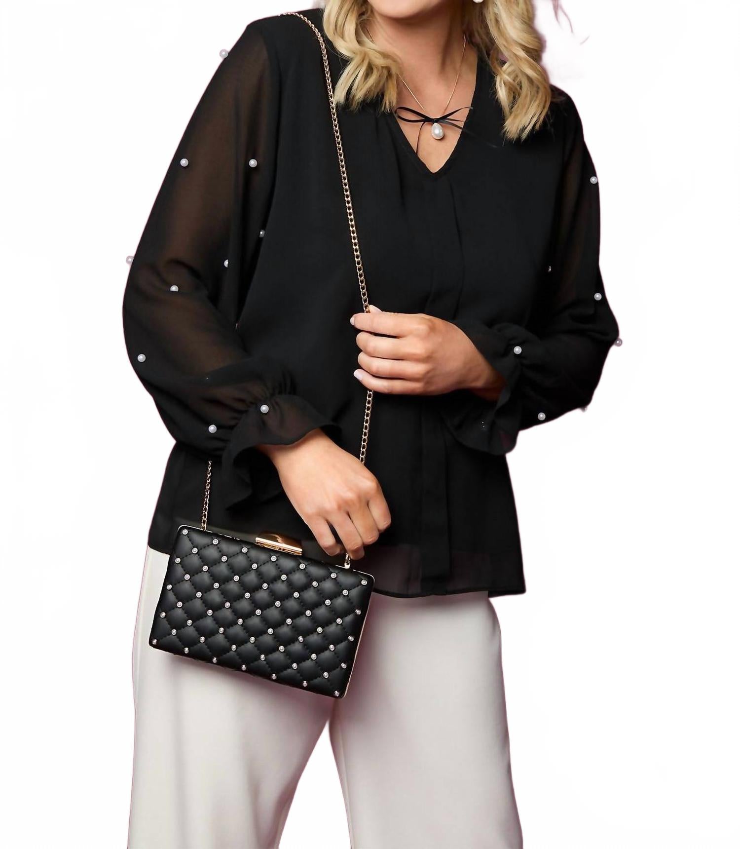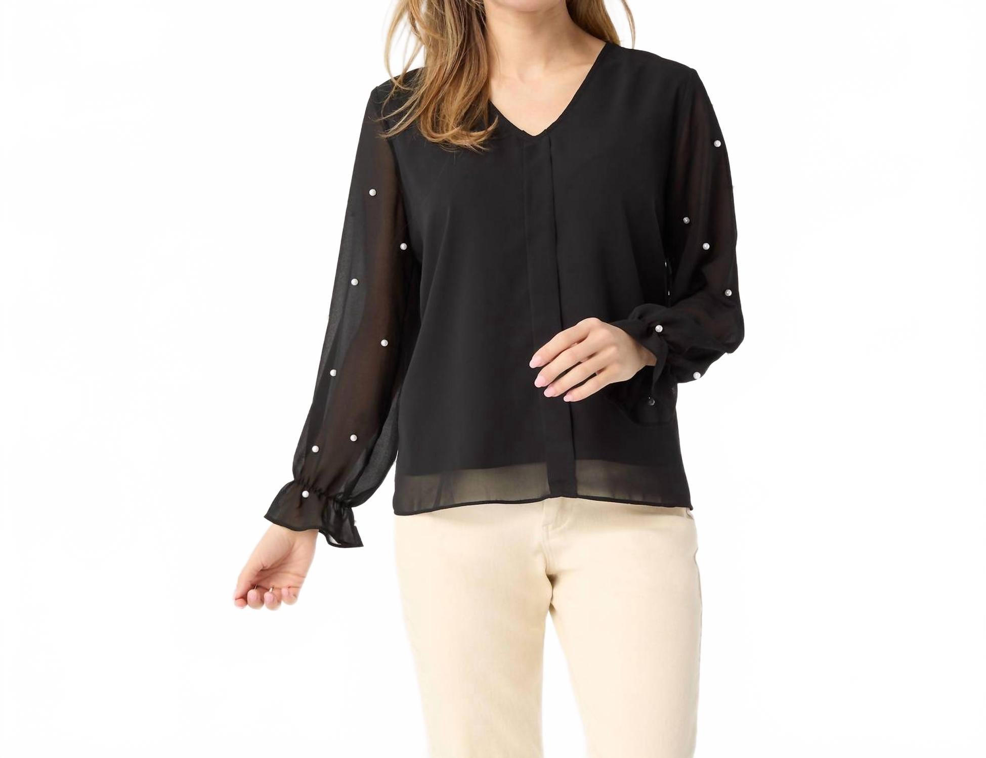 Сочетайте эту блузку с любимыми джинсами и шлепанцами для следующего девичника. Представляем блузку с длинными рукавами Perla от COCO + CARMEN - шикарную вещь, созданную для современной женщины. Благодаря фактурной отделке и элегантному V-образному вырезу, эта блузка классического черного цвета органично сочетает стиль и комфорт. Изготовленная из полиэстера, она имеет удобную застежку-молнию, идеально подходящую для элегантных званых ужинов, где важна сдержанная роскошь. Инструкция по уходу включает ручную стирку, что гарантирует, что она останется неотъемлемой частью вашего осеннего гардероба.