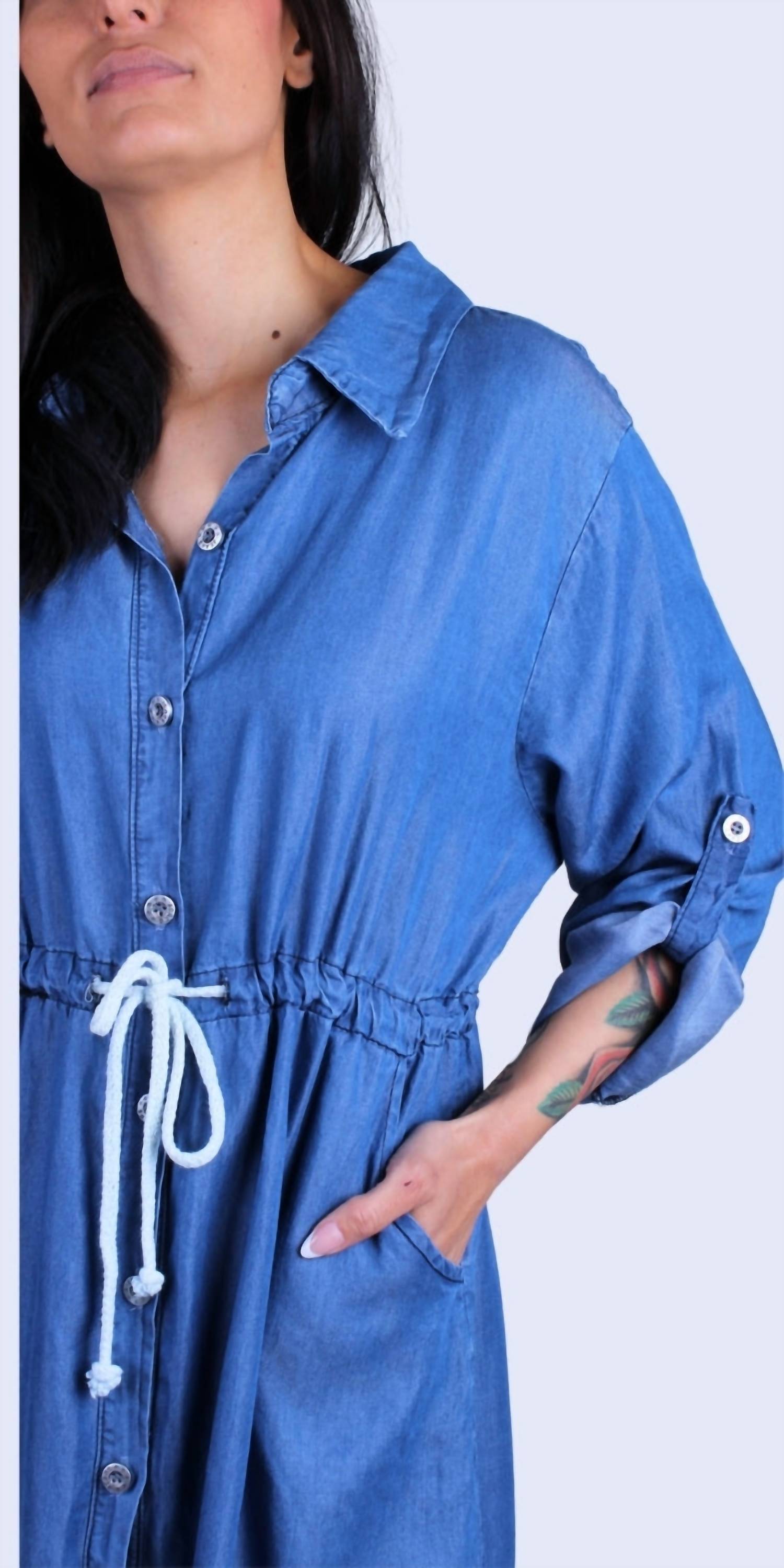 Платье идеальной длины действительно существует. Обновите свой отпускной гардероб с помощью джинсового платья-миди Fresca от GIGI MODA, выполненного в классическом синем цвете с однотонным узором. Этот элегантный силуэт-футляр имеет рукава три четверти, V-образный вырез с воротником и удобную завязку на талии. Изготовленное из 100% вискозы, это платье имеет практичные карманы и застежку на пуговицы для комфортной посадки. Сделано в Италии, легко стирается в машинке. Рост модели - 170 см.