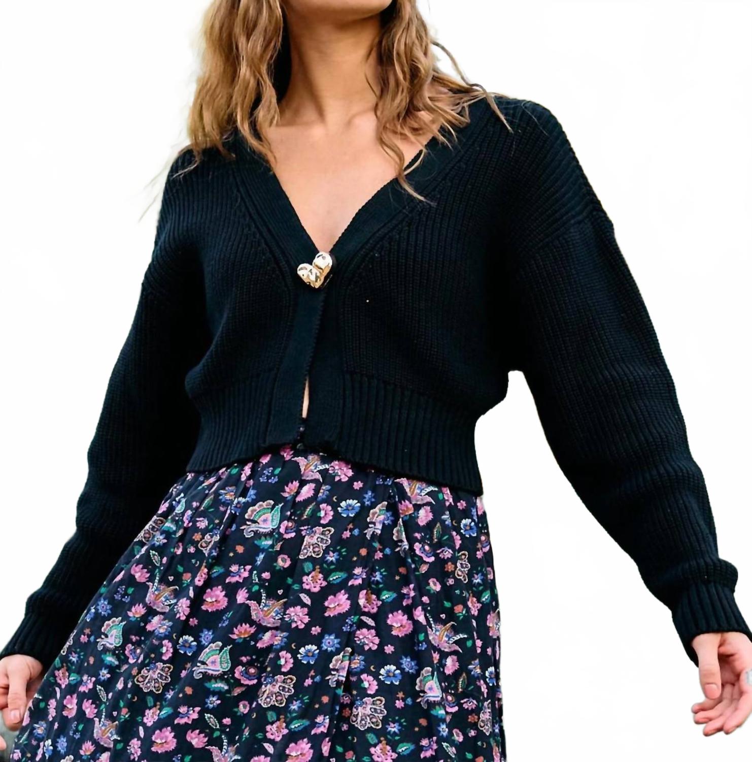 Этот кардиган станет вашим любимым свитером. Почувствуйте игривую романтику кардигана Heart Sweater Cardigan от Cleobella, изготовленного из мягкой органической хлопковой пряжи для максимального комфорта. Эта черная минималистичная модель имеет длинные рукава, укороченный силуэт и V-образный вырез, дополненный застежкой на пуговицы в форме сердечек для очаровательного штриха. Кардиган без карманов украшен ребристой отделкой на вырезе, подоле и манжетах для элегантной посадки, а также эффектным брелоком в виде несовершенного сердечка. Он идеально подходит для многослойных образов, сочетаясь с джинсами, юбками или платьями под жакетом. Уход: ручная стирка, сушить в разложенном виде.