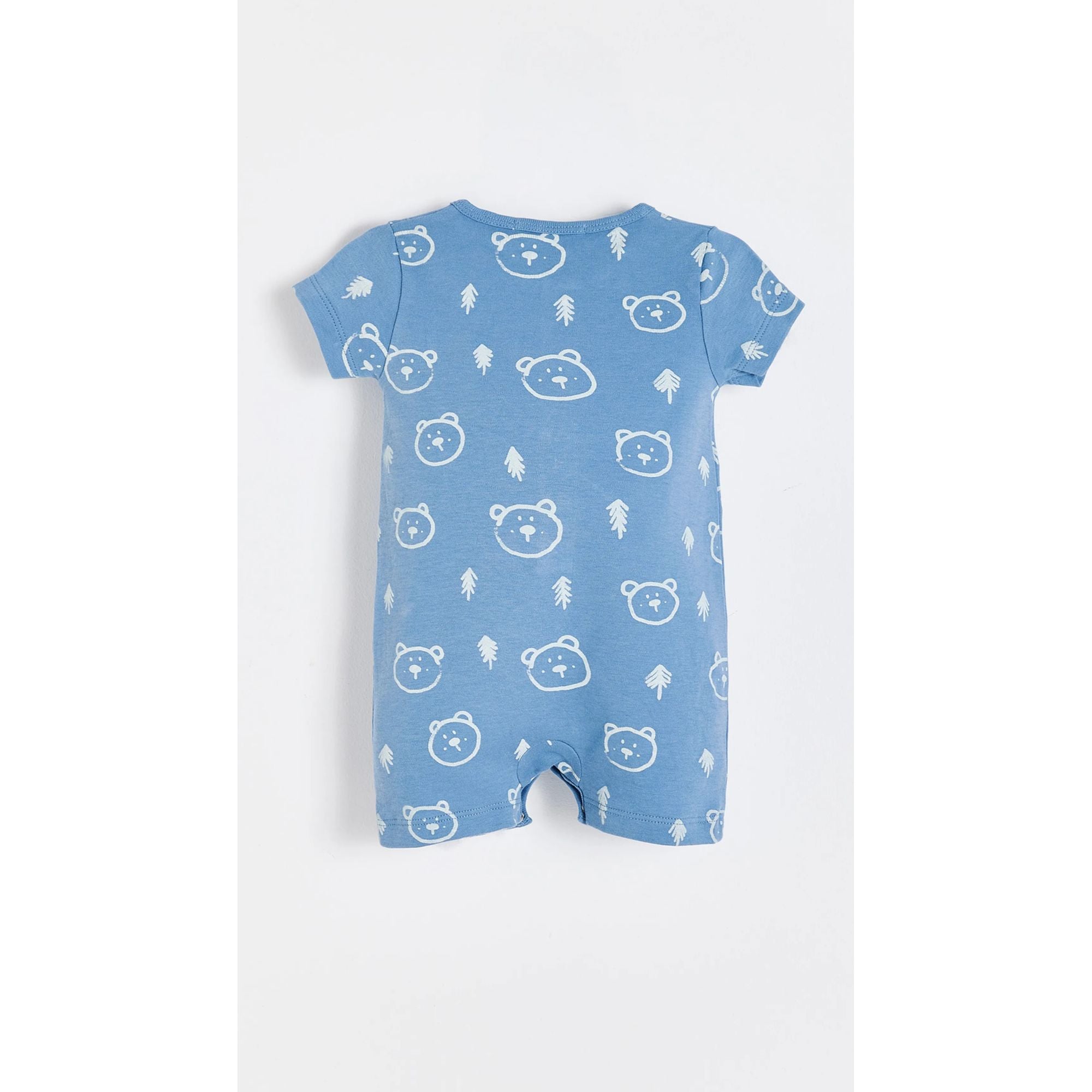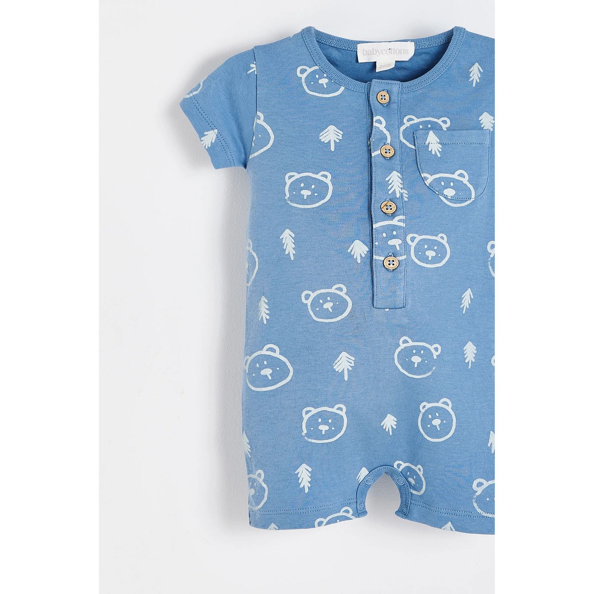 Комбинезон из хлопка пима с принтом, выполненный по мотивам коллекции. Короткие рукава и штанины, застежка на пуговицы спереди до пояса и передний карман из той же ткани. Застежки-кнопки в области промежности облегчают смену подгузников.