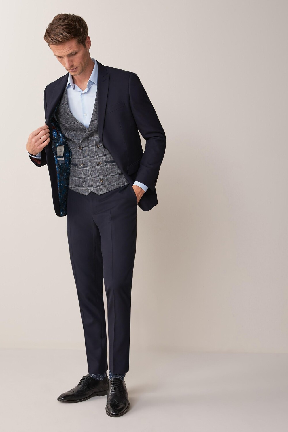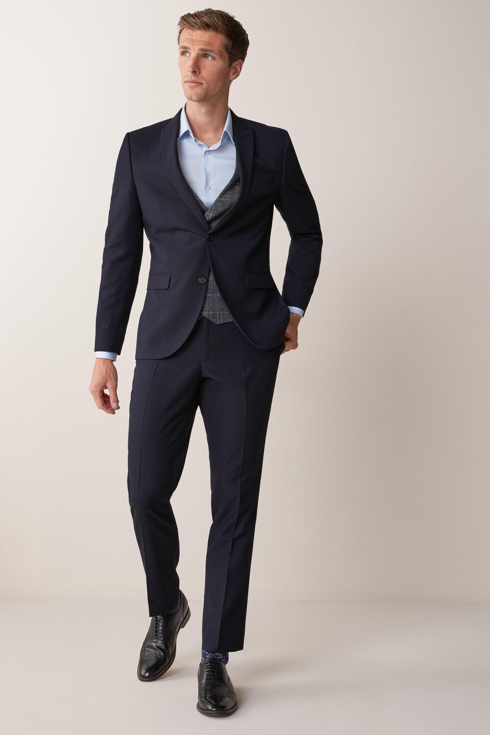 Пиджак застегивается на две пуговицы Next, синий